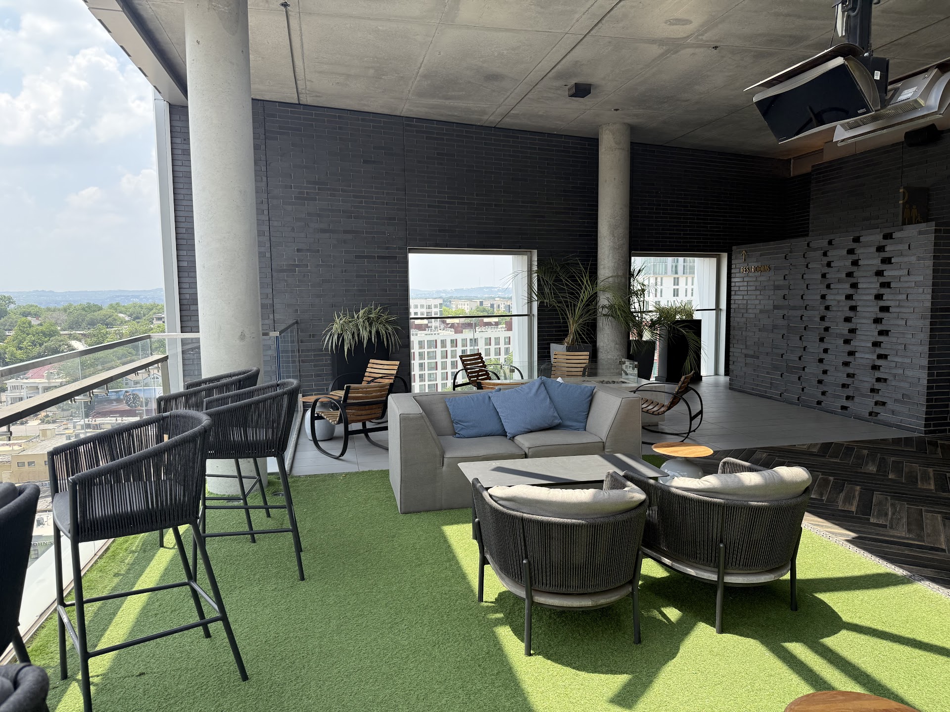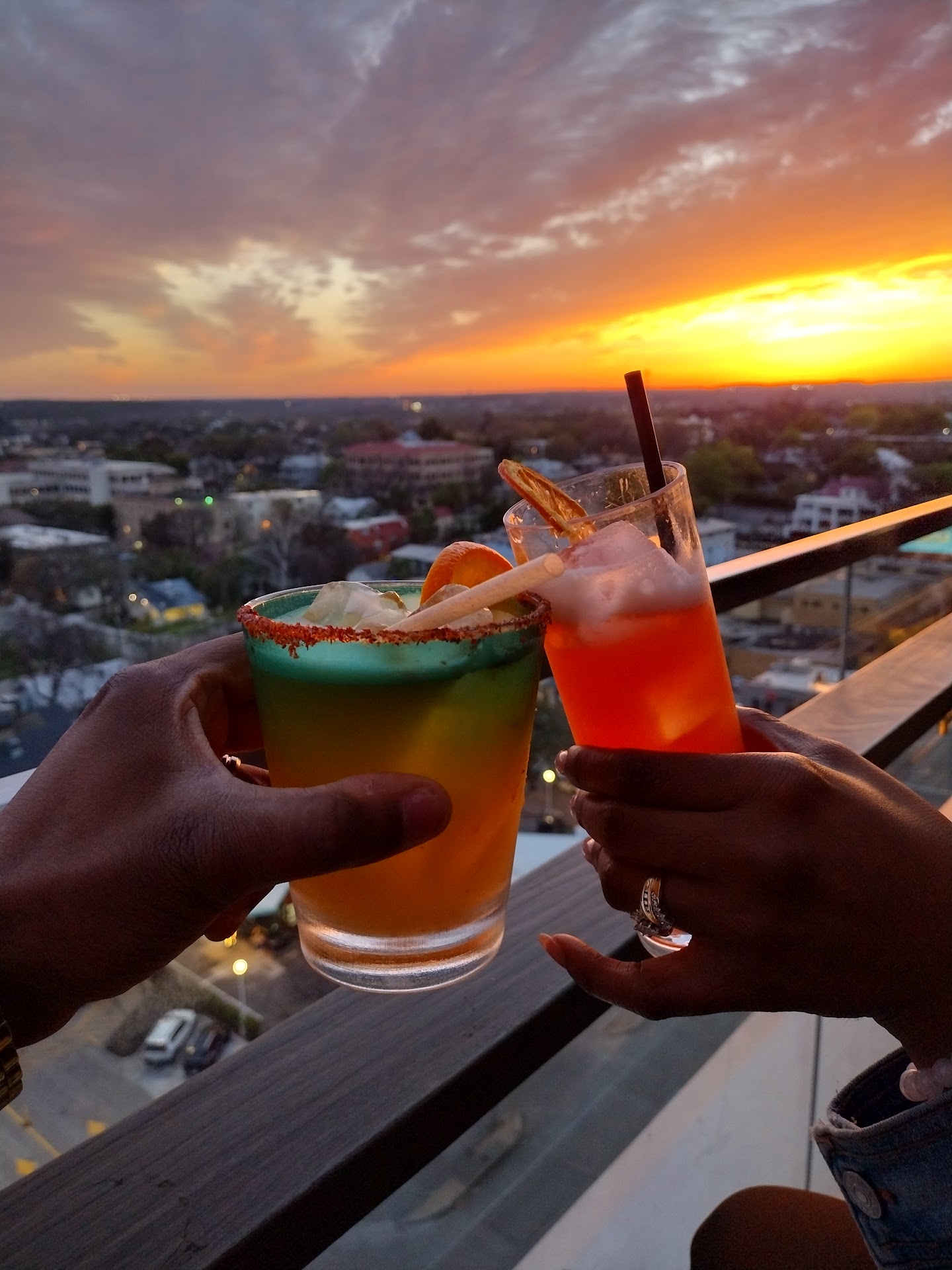 I am STUNNINGLY surprised by the amount of good reviews on here. Maybe we just caught them on an off day, but I visited with some coworkers to celebrate one of our team members moving on to bigger and better things somewhere else recently. We were all really excited to go to a rooftop bar and catch a great view of the city. One side of that view is beautiful... The other maybe more of a view of concrete and parking lots. A great view of Canes and Chick fil a. Not anyone's fault just sit close to the bar and not the pool if there for view!