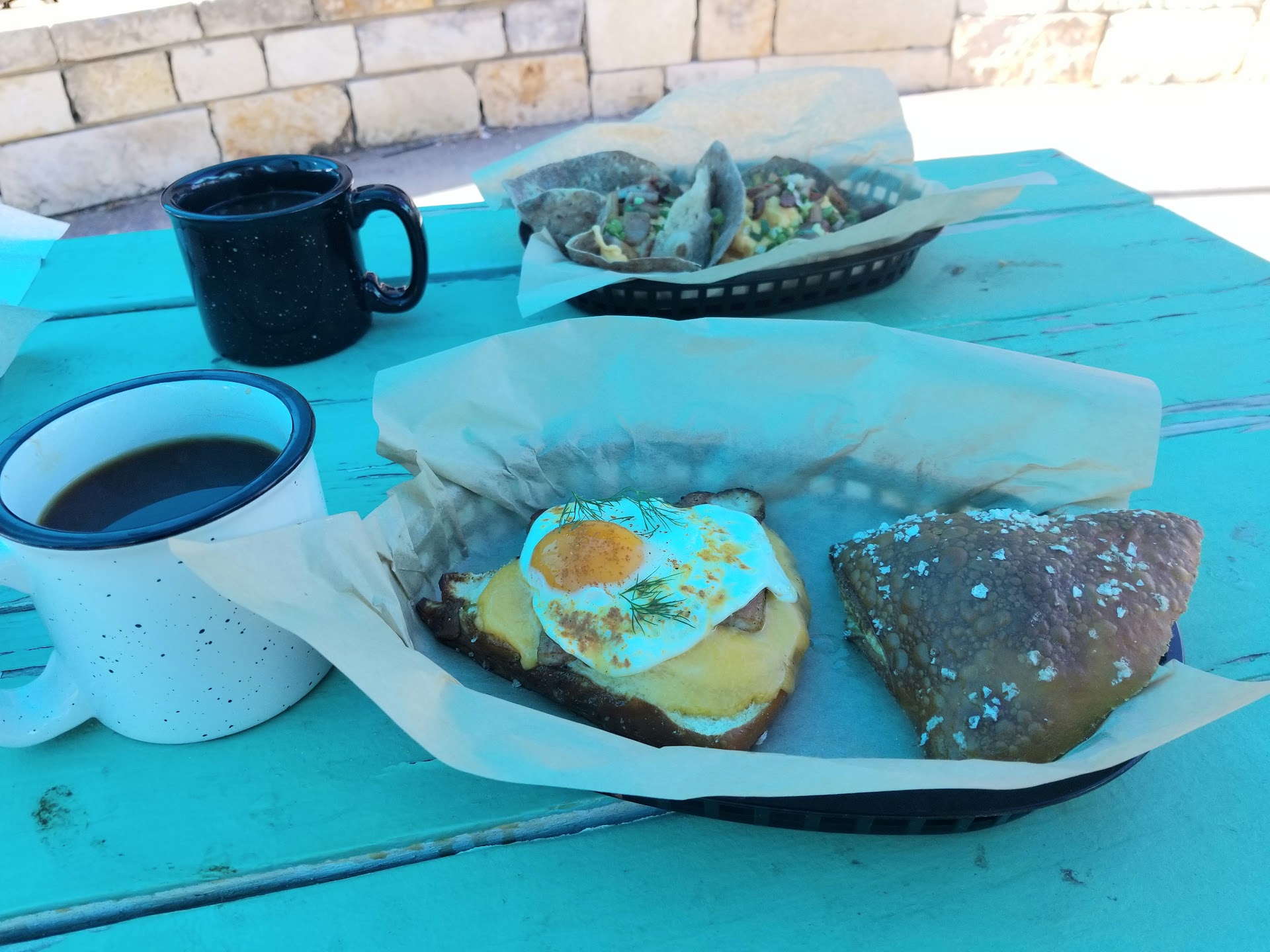The Shakshuka breakfast taco was super unique. I love Shakshuka but never had have it in breakfast taco form. The eggs are cooked really well, a nice soft scramble mixed in with spicy tomato sauce served on a super unique marble rye tortilla, which I've never seen anywhere else. I added sausage, which honestly wasn't even necessary.