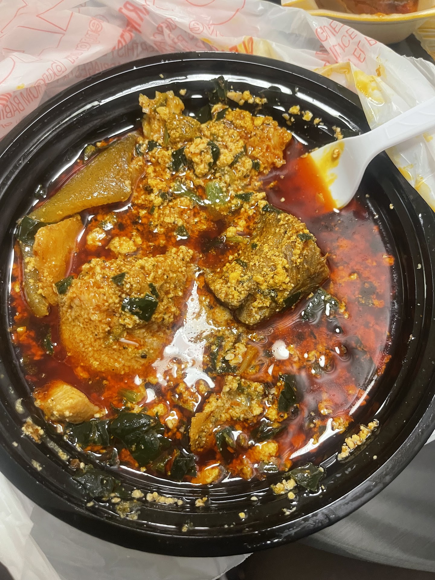 I am typing this review while sitting on a toilet for the 5th time at 1:15am. While I’m mad, I’m still trying to be fair, hence the 2 stars. I am in Austin for a conference and I ate at palatable twice. The first time, I went in person and had amala, it was good, nothing remarkable but also no serious concerns. The meat was a little hard but I feel like that’s fairly common. My friend had jollof rice and the food came out cold and she talked about food safety with them not maintaining food at the proper temperature. That should have been a sign but I ignored it cuz I kept eyeing the egusi soup someone else at the restaurant was eating. Today is my last day in Austin and I decided to order egusi and poundo via Uber eats. If you scroll down, you’ll see other reviewers talked about how they felt cheated when they order online as opposed to going to eat in person. Comments like I was only given bones, or fewer pieces of meat, etc, so when I made my order I added a note asking for soft meats, no bones. I attached a picture of what came. The egusi had way more oil than soup. I saw multiple people eat egusi when I visited the restaurant and it wasn’t this oily. I had to pour out the oil to be able to eat this soup but it wasn’t very good cuz it just tasted very much like unbleached palm oil. Still I finished it cuz I live in a city that doesn’t have a single Nigerian restaurant so this was my last chance. I had that meal around 8pm and I’ve been to the toilet 5 times since then. Palatable owners, y’all need to do better. I met the man and his wife who owns the restaurant and they seem like a nice couple but you need to do better and stop acting like this is Nigeria where you can get away with anything. How do you pack oil inside soup like this? And how clean is your kitchen and food handling staff? Are people washing their hands before handling food? I am honestly tempted to call the authorities to do an inspection of your facility cuz I’ve never had diarrhea this bad in my life. And this was my first meal today, so I’m sure I got food poisoning from you. People trying to visit here, do it at...