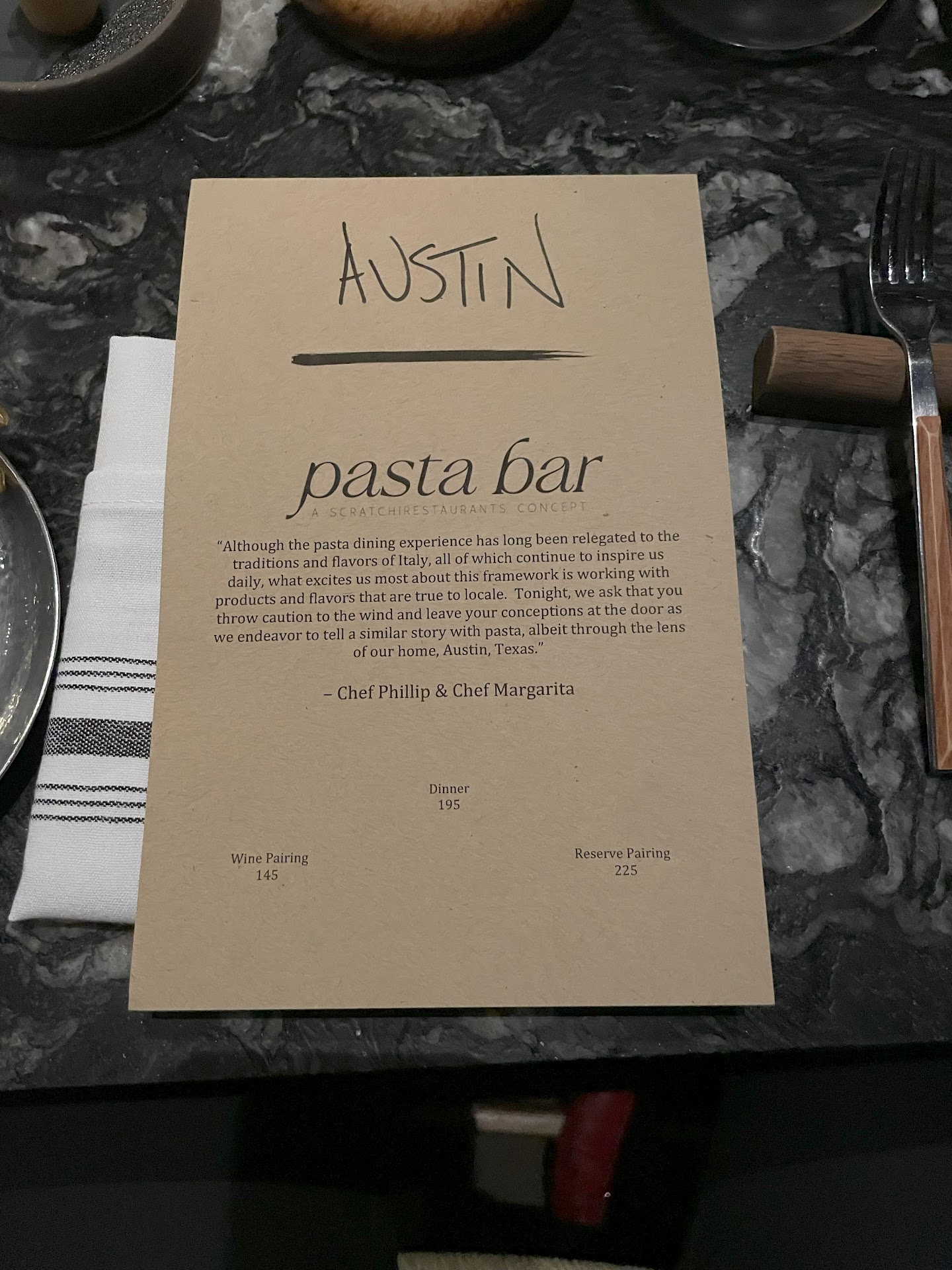 That being said, if you are a foodie and have an important client to entertain or are looking for a special occasion restaurant while in Austin, Texas, Pasta|Bar Austin will certainly provide an unique, luxury experience that keeps you guessing.