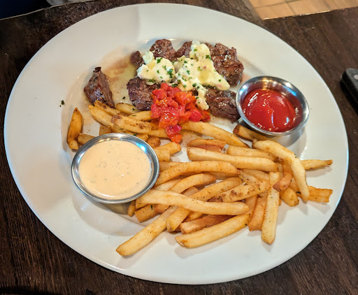 The salad my mom got looked good and she really enjoyed it. My fiancee's ribs were absolutely delicious and I was stealing the coleslaw off his plate, so fresh! I got the Petite Steak Frites from the happy hour menu and while I enjoyed it, I was disappointed compared to my party's meals. The steak is very petite and parts were quite chewy. I asked for medium and got a medium rare, which I'm perfectly fine with but I know others would have had issues. The fries were delicious though and after the tasty butcher board I was happy overall with my meal.
