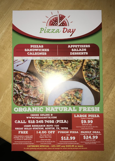 Read morePlaced an order at Pizza Day today and we just weren't satisfied with the food. Which happens. Not a problem. But I tried to call 5 or 6 times during the course of an hour to try and see what their satisfaction policy was, and didn't get through until 8:30. I think that's pretty bad for business - if they're that busy, they should consider hiring someone who can take calls. Not getting through once is fine, but taking an hour is a little absurd. We ordered a vegan pizza and calzone, and just didn't like it. Here's the problem: When I called to see if they had a satisfaction policy, I was met with the most disrespectful manager (named Roger) I've come across in a long time. I was polite and trying to ask questions, and he was very abrupt. I attempted to tell him that it was ok if we couldn't get a refund ($26), but instead he just said things like "yeah, that's the way we do it" and "no one ever has a problem" and "yeah...can't give you a refund because you didn't like it." And I would have been totally fine with that if he wasn't so rude. I love to do local business, especially with places that have vegan options, but I really only want to do business with respectful people. I hung up the phone before he could continue being rude. It was just really...