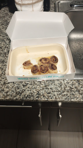 Read moreThe pizza had no sauce that was detectable. The thin crust was chewy not crispy, at all. The cinnebons we're not properly proofed. They were small and doughy. One was barely the size of my thumb. The driver also forgot my red peppers. I ordered late and by the time I opened them they were closed. I call the next morning. Talked to three different people, none claimed to be the mgr. The three people I talked to routed me to a ph# where nobody answered. This was nothing short of a con from a bunch of lazy employees who don't do their job. I find it hard to believe that any upper management tolerates these employees attitude and the lack of food quality. I took this pic after I attempted to proof the dough on my own. They were actually aittle smaller. As you see, not very successful. They look nothing like the picture Hut uses to advertise them. Definitely an instance of bait and switch thievery. I WANT...