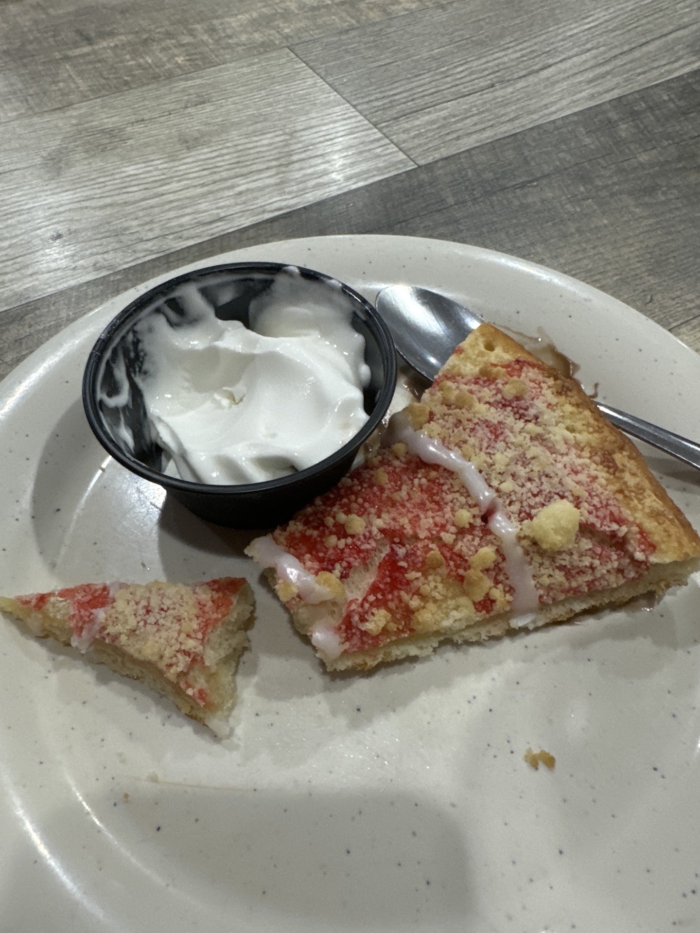 Ā Ā Ā Read moreOur daughter wanted nothing more than to come have dinner here for her birthday, we arrived at 5pm⦠there was other people waiting in line but no one at the front attending to any of us for minutes⦠when we did finally have someone wait on us she was nice, and rang us up then we went to get our drinks and there were no straws.. there were others also looking for people who worked here and no one was in sight except the girl helping people at the register, so I felt bad but I had to ask her when she was free if she could grab someone to get straws, she said she would herself.. We got seated and then went to get our kids food .. there was 6 of us in total and the food was old.. quite old. About half way through out dinner there were a few fresh pizzas that come out.. thank goodness but Iām wondering if they mustāve been cleaned out before 5 because it was a ghost town in there when we arrived. We waited our whole dinner with the promise of chicken with no avail. We then decided to skip dinner and go for dessert and all that was left was this one red dessert pizza and ice cream.. of our party of 6 us 3 adults left hungry and we paid $66 as we had a $5 reward.. super disappointing for a...