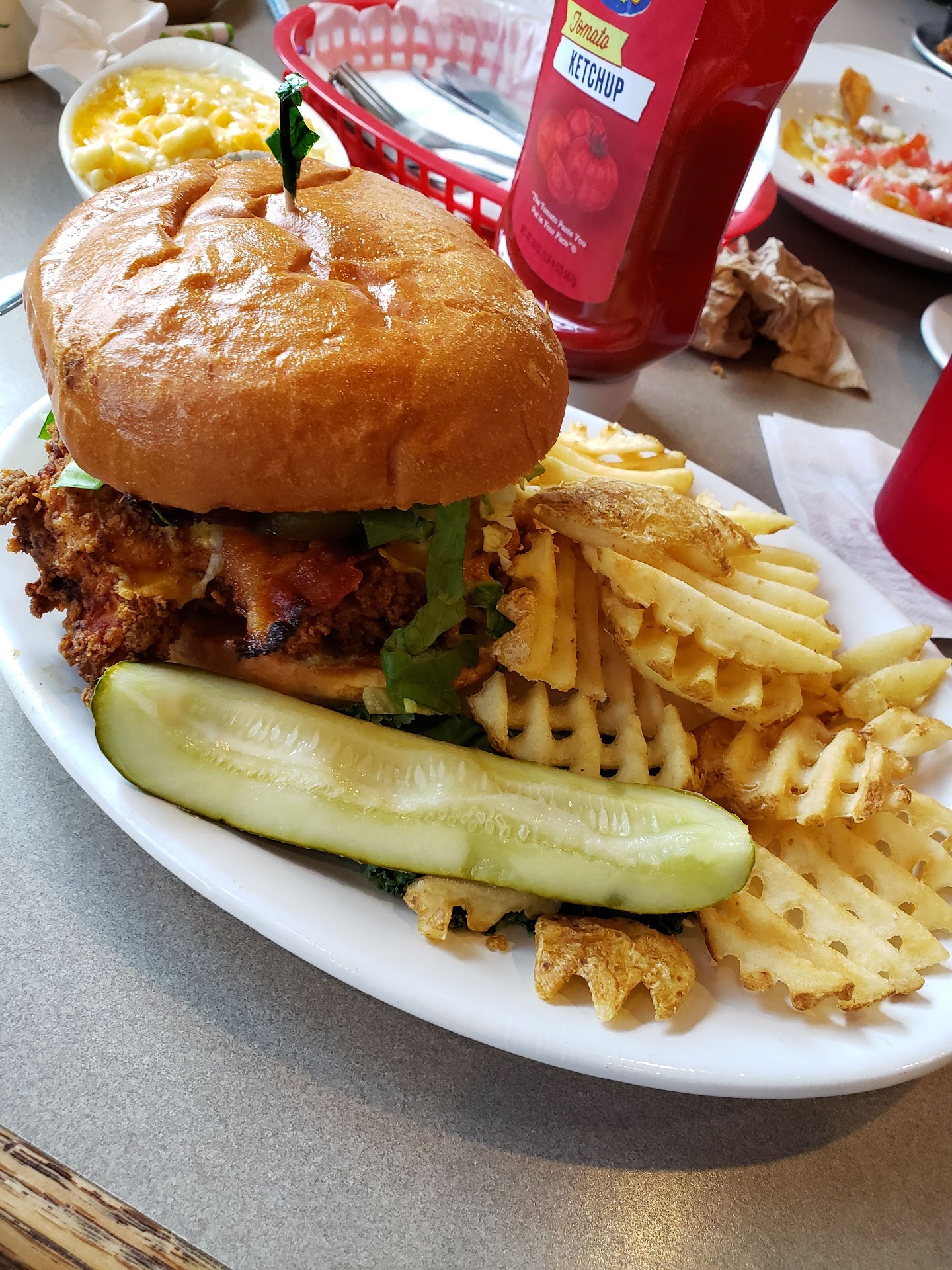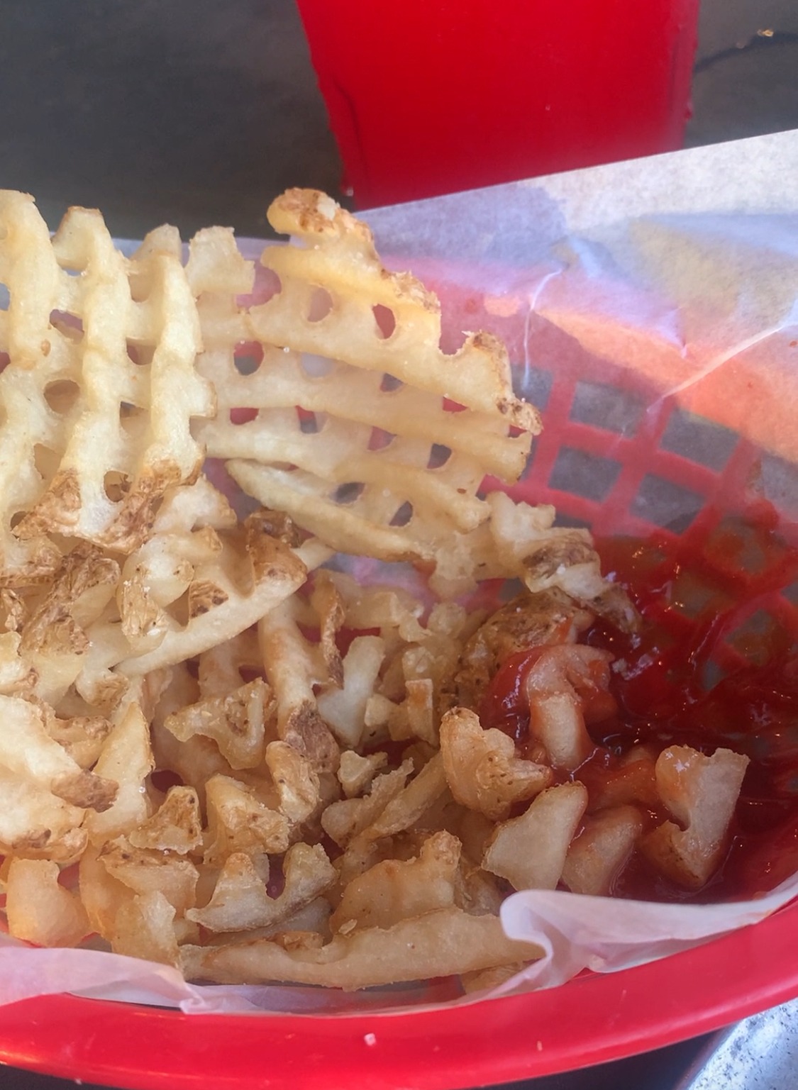 Lemonade was the best, very refreshing and not Chick-fil-a super sweet. Then my order arrived, at first glance looked OK, I was starving so I decided to dig in...I almost lost my front teeth with the first bite! The wings were super-hard-dry, I digger in more and below the wings that were smothered on more sauce were the dry ones (I ordered 15 by the way - special on that day and yes, I was STARVING I could've eaten a whole cow that day!). Anyhow, they were so dry they looked as if there were either sitting for way too long before being served or from the day before...almost no sauce and hard to eat, then had a bite of my fries when I realized that under the bigger waffle fries laid the remaining of what used to be whole waffles, they were just bits of them...R.I.P.