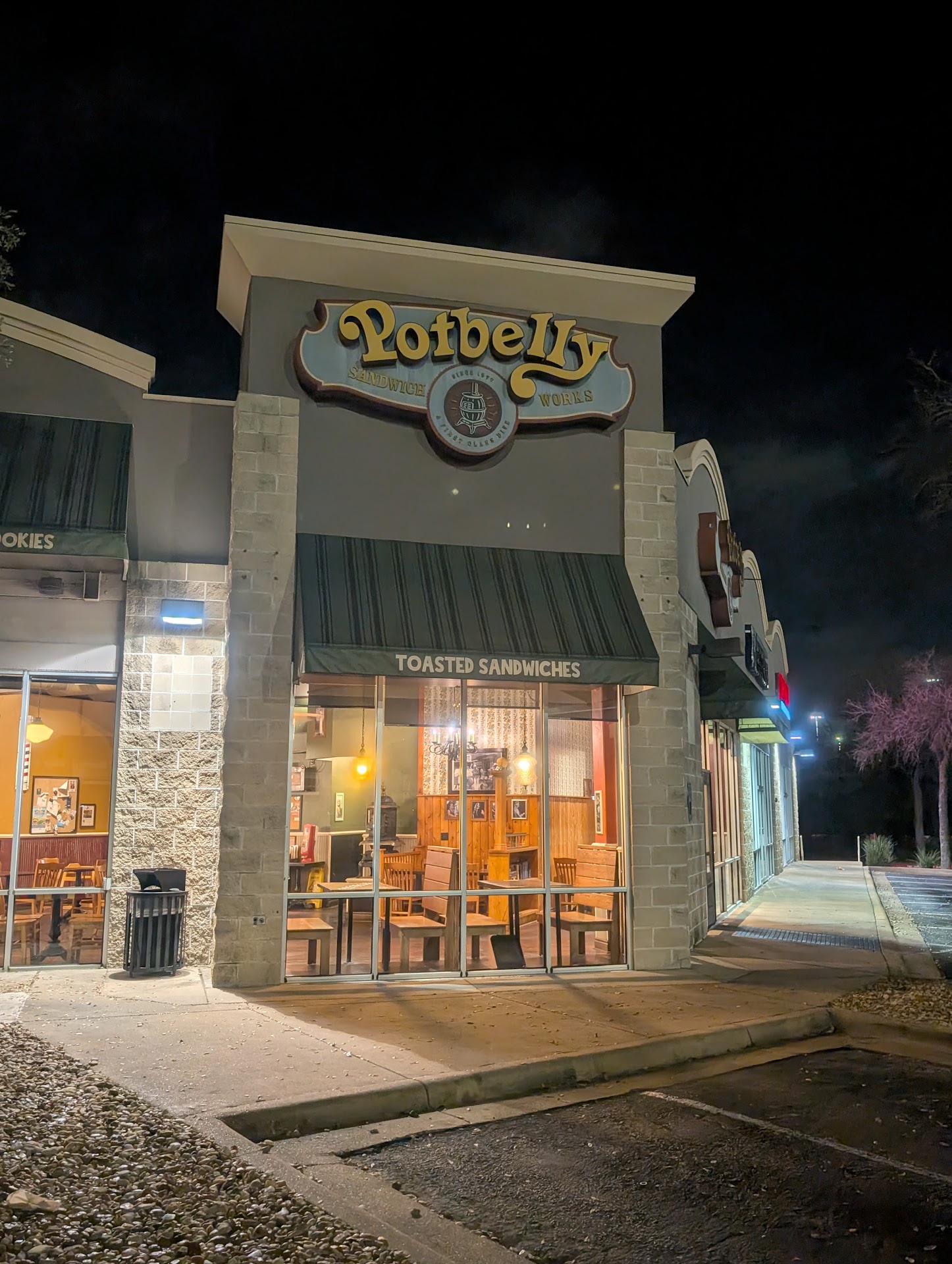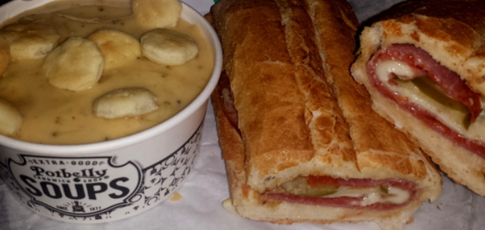 Had the ham and swiss sandwich with lettuce, tomato, onion, mayo, mustard, salt and pepper on warm toasty ciabatta bun. I asked for jalapeno but they don't have it. But the do have a hot relish. They told me what hot pepper it was but I can't remember other than I knew I didn't care for it. The sandwich was toasty goodness. The tinny ham went well with the small amount of Swiss cheese they used. Would have liked more. But I could taste it. The sandwich reminded me of a Cuban. This was my first visit. I knew nothing about the place. What drew me inside was the name, Potbelly. I was really looking forward to a good pulled-pork and assumed, in error, that I could satiate my craving. I was quite surprised to discover they do not serve it. My impression from the outside did not coincide with what I found inside. As a Texas, the term potbelly means two things, smoked or BBQ flavored beef and/or pork, and a potbelly stove. They in fact have the later in display, but not even a whiff of the former. I mislead myself jumping to conclusions like that. I did however, enjoy my delicious sandwich. They do have chicken and other proteins, can't remember at the moment, and soups. I recommend that you go and try them. If you like sandwiches. Oh, they do practice CVD19 protocols. I was pleased to see that. Otherwise I would not have...