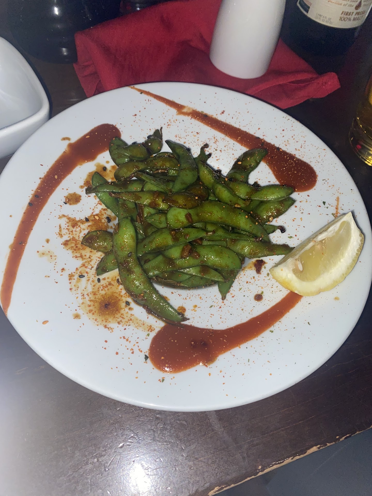 Food: 4/5 Our appetizer was garlic edamame. It was so good I had to stop myself from licking the spicy sauce off my plate. Highly recommend if you like spicy food and edamame.