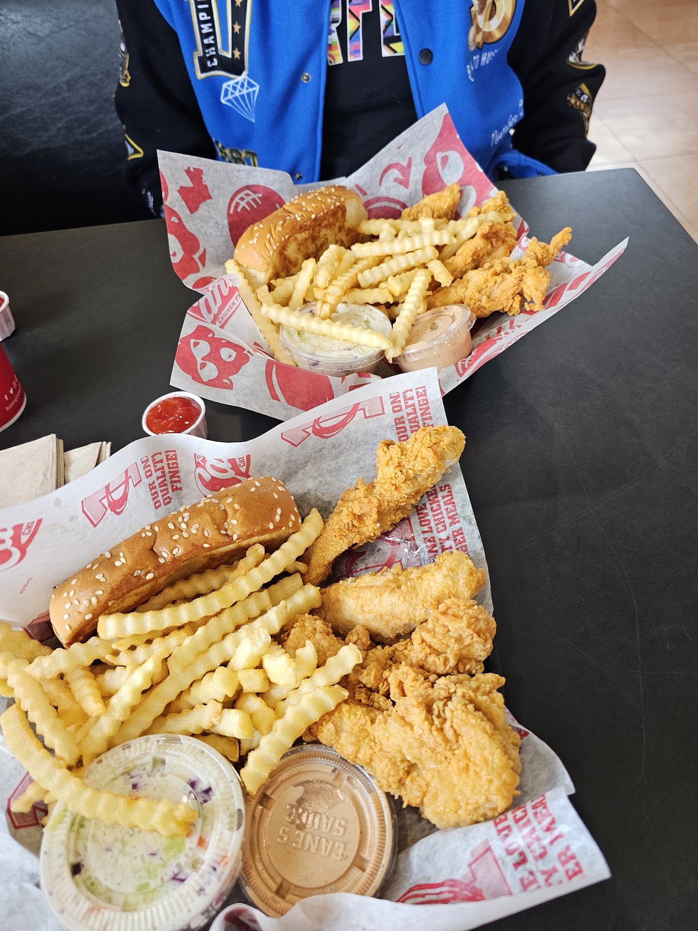 Read moreThis particular restaurant is located in a very bad spot, but that’s not what this review is about. The drive thru itself is extremely tight and impossible to turn in a truck truck without banging against their built in caution poles. When we pulled up to order, I asked what their Cane’s sauce tasted like. The person taking my order replied with “we can’t give out the recipe, it’s confidential.” I then said “I don’t need the recipe, I just haven’t been here before so I wanted to know what the sauce is like,” (I’m a sauce girl) “is it like a ketchup/mayo combo, barbecue, thousand island, ranch… etc” she replied “no it has no ketchup or mayo in it, but again I can’t share my recipe.” Great, literally no help at all. I literally just wanted to know what it tasted like los Anyway, looked up the recipe after just because of how resistant and unhelpful she was, and it turns out it is made with mayo, ketchup, Worcestershire, pepper, and garlic. HA! Food was alright, nothing special. Menu could definitely use...