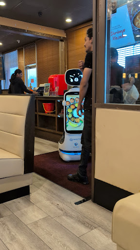 Starting off after sitting down we saw the most adorable robot. This thing was weekend and smiling handling food like a champ.