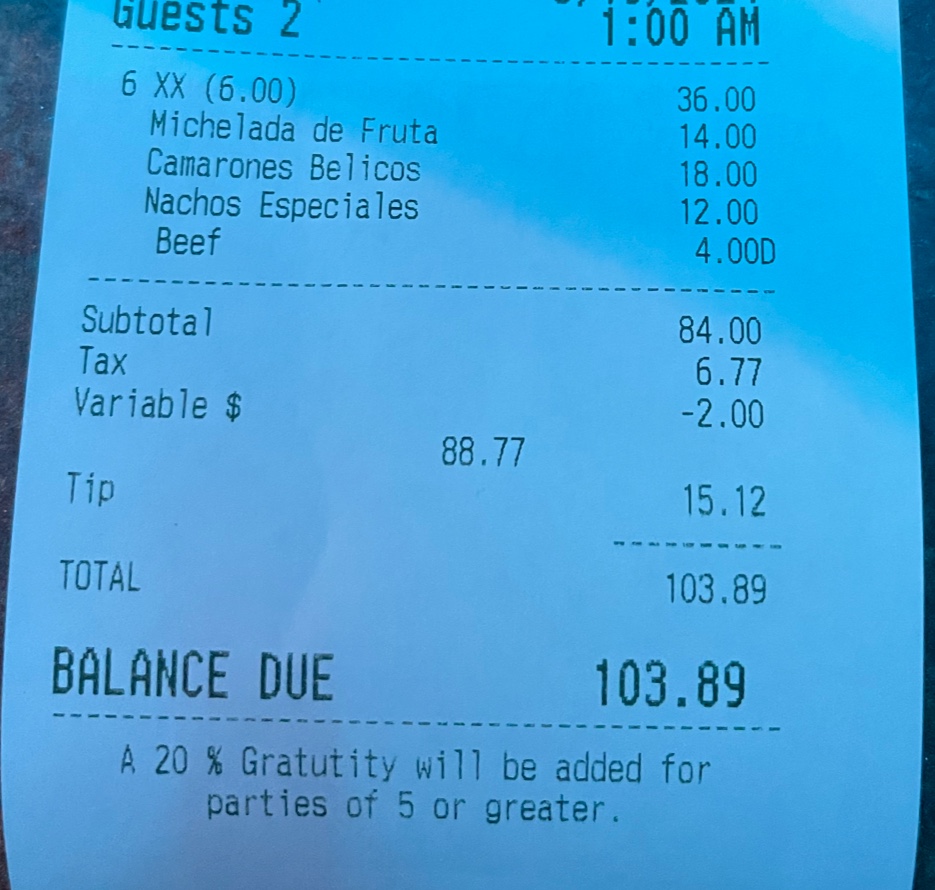 Read moreI was expecting a lot more from this place because of the simple fact that it is SO HYPED over that I figured I had to try it out for myself & ended up extremely disappointed. The drink I got tasted like artificial watermelon with alcohol, when I was told their agua frescas were made fresh & this drink was supposed to be the sandia agua Fresca with mint & a few other refreshing bits - from a powder packet maybe? I told the server I wasnât a fan and she took it⌠I got offered a shot for an additional charge which I said no thank you toâŚ. And still got charged for the drink that I didnât drink or get a replacement for? I was left wondering with my check, had I asked or had the drink replaced, would I have been charged for both? Also, the shrimp ceviche I got - wasnât sure if the limes were fresh? Because the ceviche tasted like it was sitting in a bath of chemicals, wasnât brought over any crackers or tostadas and had to ask if I was able to get any and not just eat the ceviche by itself? My friend got the tilapia and it was just plain and didnât taste like anything. The fish was cold and chewy, the fries were probably the best part of her plate & those werenât even that great. They had a cardboard like texture⌠I would say the service was just okay, maybe 6/10. The server seemed confused and mislead. She tried. Overall experience, 3/10, will not...