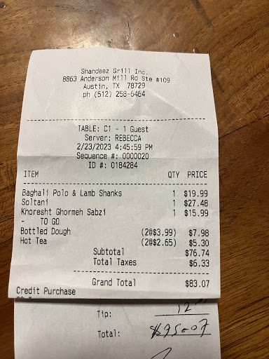 Ā Ā Ā Read moreI have been coming to Shandeez grill since 2010 when we lived in the neighborhood across the street.