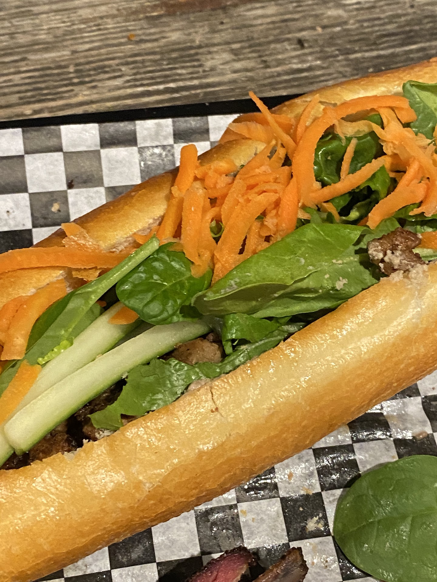 Banh mi: I usually donât opt for chicken dishes as it tends to be dry, but their chicken banh mi was so tender with the perfect kick of spiceânot too salty! Itâs a fusion spot so with that expectation in mind I really think they nailed it. The bread was also toasted to perfection with great texture (not overly crunchy). Filling proportion of protein/veggies to bread ratio so well worth the price IMO.