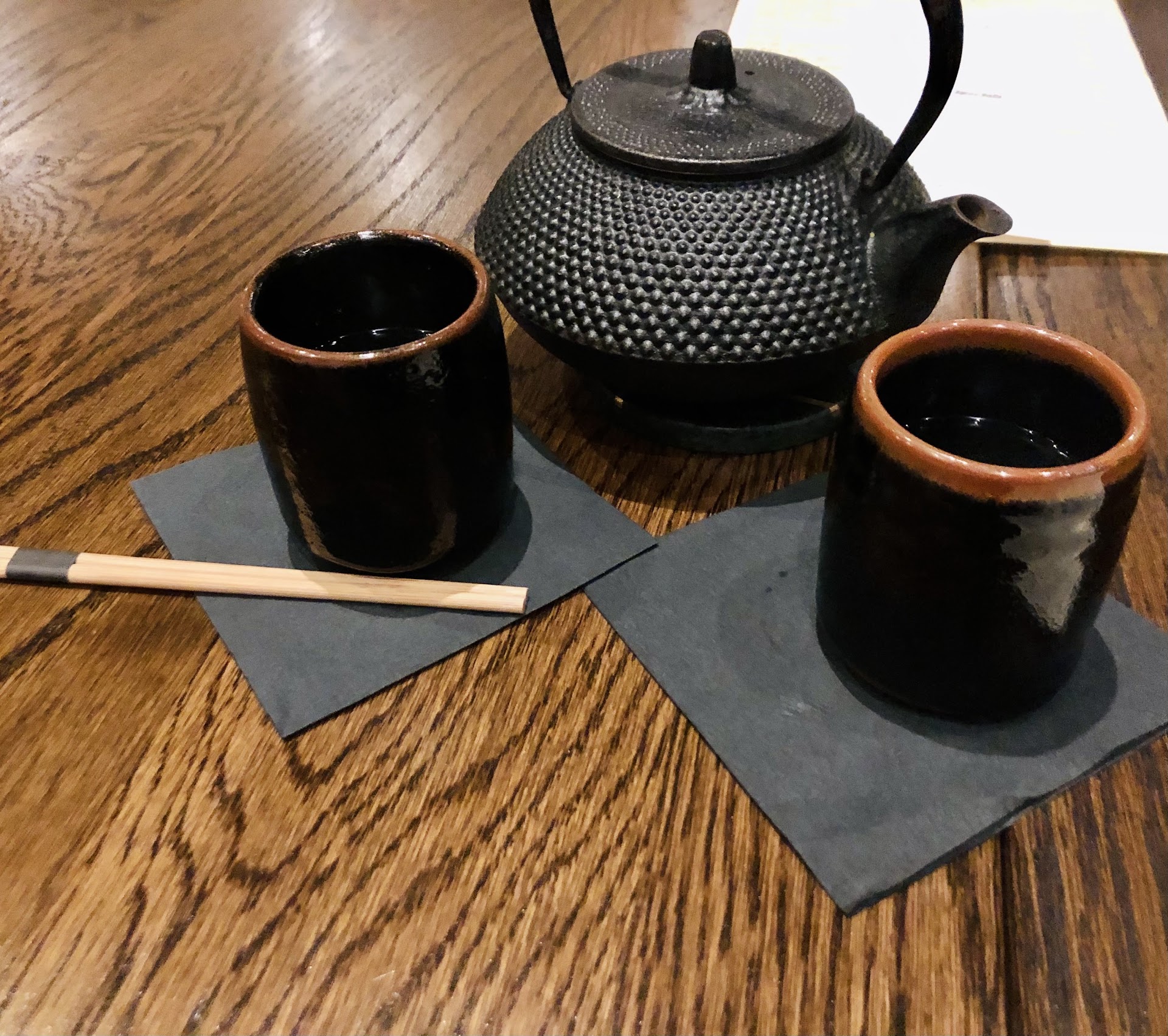 We get the truffle edamame for a starter: absolutely stellar. Highly recommend this simple dish. The hot green tea was served in a beautiful traditional pot with stoneware, it was a great addition to our meal. We then receive a sushi I don't know the name of and my sweet daughter says "where's the rice and nori???" I smile. We roll up the flat pieces with our chopsticks and eat it, delicious. At this point she's a little nervous as the experience thus far is different than anything she's had before.