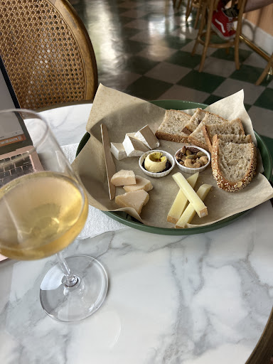 Amazing little spot for both coffee and wine. I popped in on a Wednesday afternoon and was immediately impressed with the atmosphere. The walls and ceilings of all wood and the green checkered retro flooring was such a vibe and so cozy. I ordered a glass of orange wine, and as an orange wine fan, I was very satisfied with the quality and funkiness of the wine (none of that orange wine that just tastes like rose over here!). I found myself hungry and saw that the only food options for that time in the afternoon that wasn’t nuts, pastries, or something really small was a cheese board. I asked about how big it was and the woman at the counter told me it was certainly a two person size but kindly made me a half portion of it and BOY was it amazing. The breads and house seasoned nuts that came with these cheeses were just exceptional (I need to find out who their baker is!) and of course the cheeses delivered. They were so kind and gave me more than a half portion and I left no crumbs! Such a great place to get some work done with coffee or hang with friends or a book over a glass of wine. I cannot wait to be back and cannot recommend...