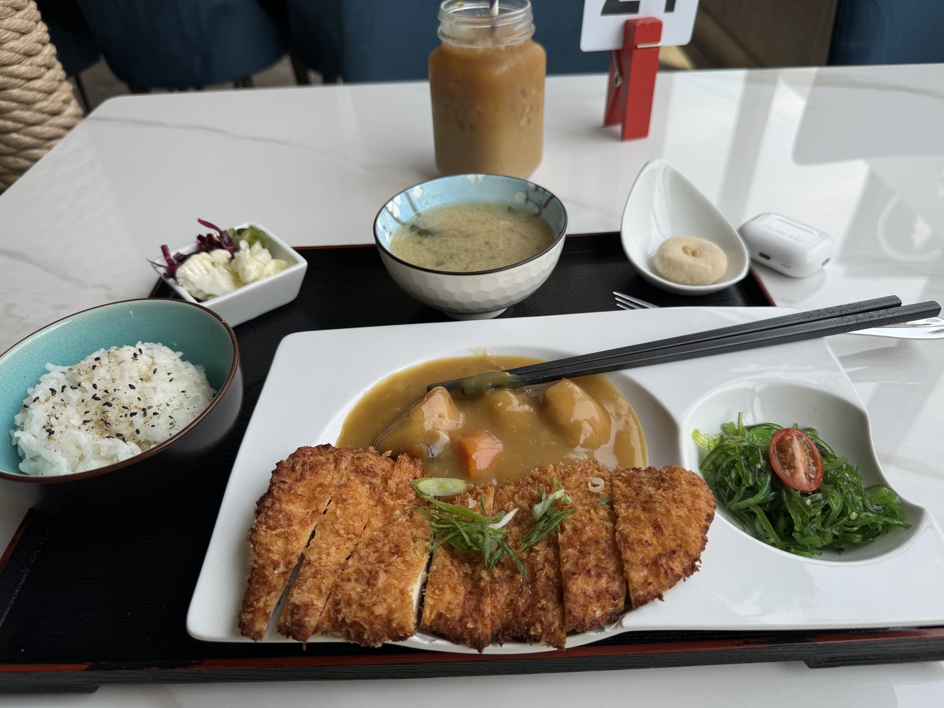 Got the chicken curry katsu and it came with a ton of stuff. All of which was meticulously presented and tasted amazing. It looked as well presented as something you’d see in a photoshoot or something. Also got a cold brew which tasted good and not acidic or anything.