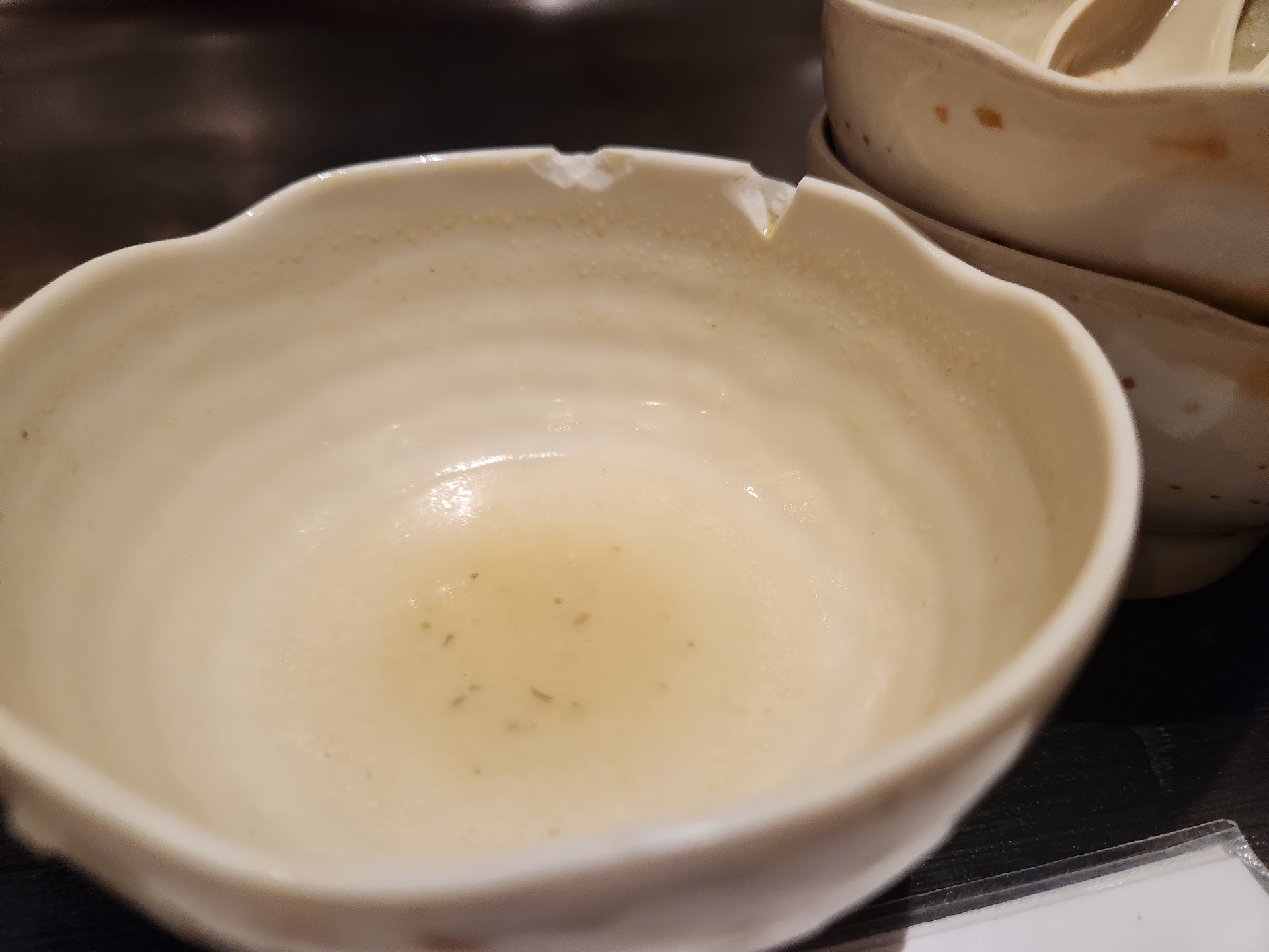 All 3 soup bowls they brought us had more than one chip/break on the rims.
