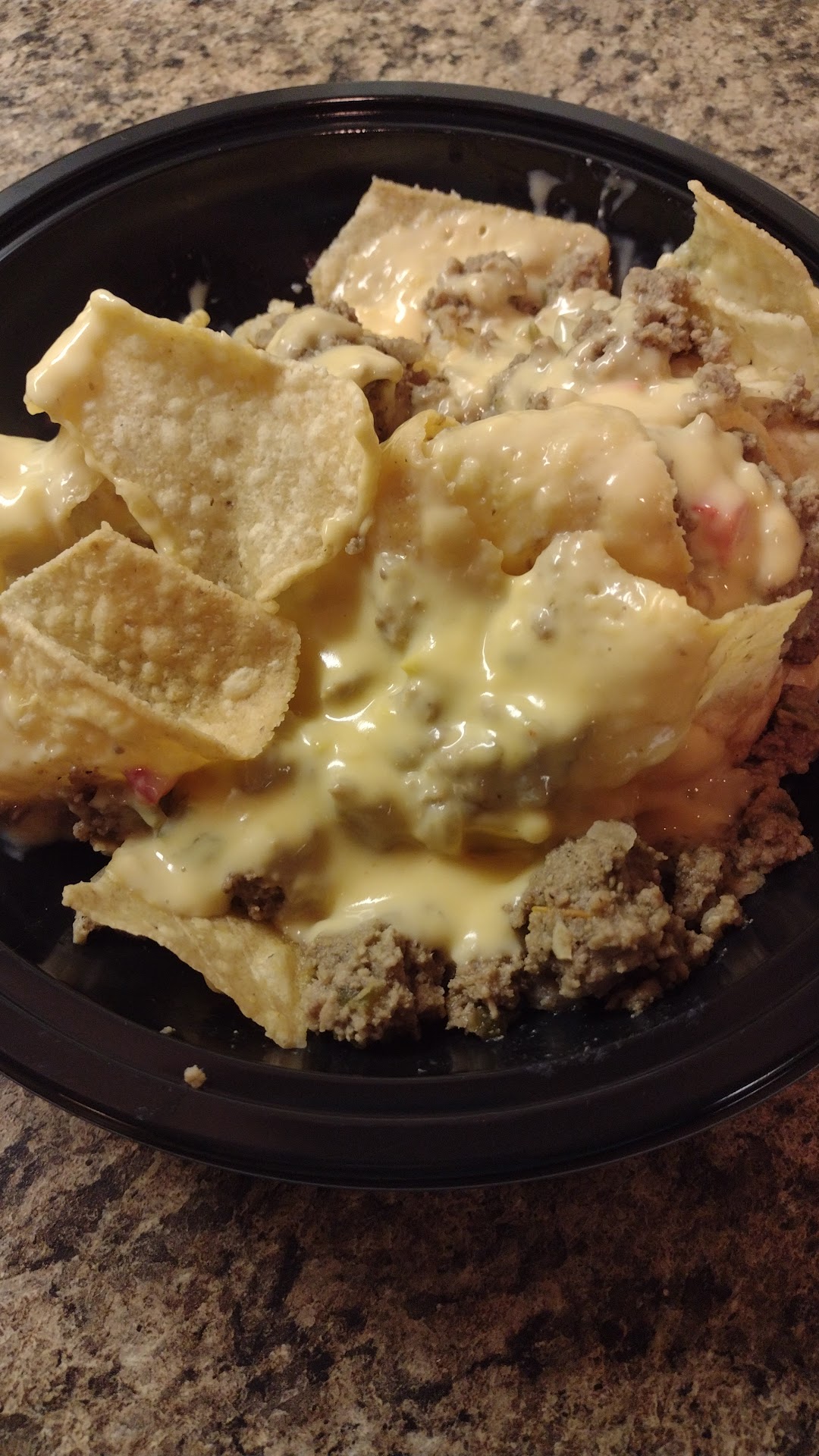 The nachos were stale, and soggy when I opened them up. I did drive them home so I am fine with soggy, but stale? These had to be old chips. But ONCE AGAIN. This $14 box of nachos was missing half the ingredients. It's supposed to have fresh jalapeno, pico, and guacamole. It had none of that. And somehow.. the beans were undercooked??? I shouldn't have to CHEW refried beans. Some parts were almost crunchy.