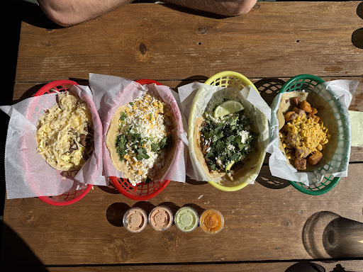 Tips: Sit outside if the weather is good...the vibes are great and maybe you'll get to pet a dog or two! Don't skip the salsa bar...so many good salsas to put on your tacos.