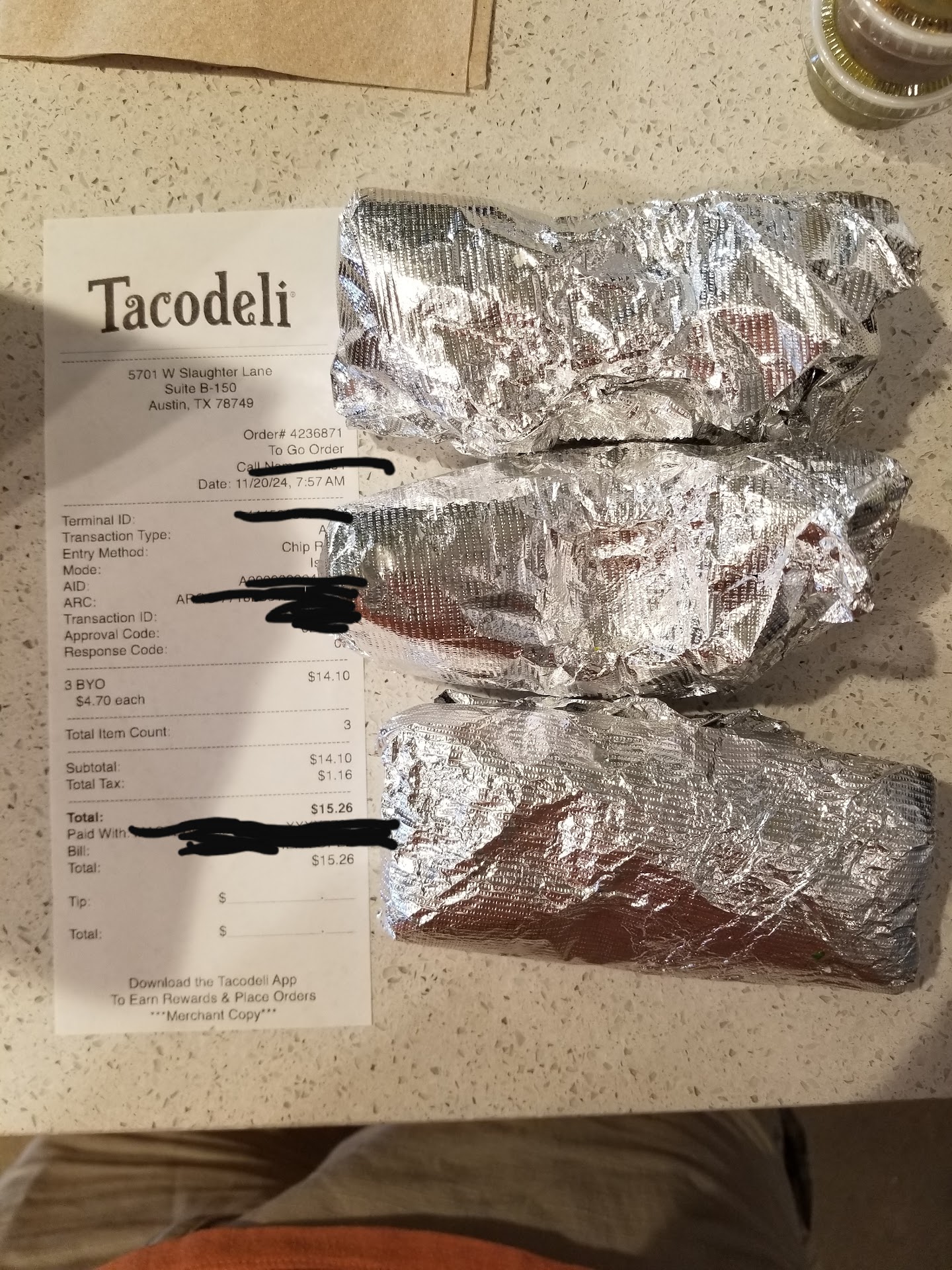 Ā Ā Ā Read moreMY ACTUAL RATING OF THIS LOCATION IS A 2 STAR āļøāļø because itās a new location that recently opened in the midst of tough circumstances and I do not wish for my review to lower their rating but to serve as a constructive comment. As a family, we ordered a medley of tacos, quesadillas, etc. encompassing ingredients ranging from pork, chicken, to a variety of beef. We ORDERED ONLINE, which means Our order was āSpelled Outā. We did not get any of our Quesadillas. The pork tacos were actually good. Chicken tacos were offensively tasteless and bland. Beef tacos were super salty, in fact, each of us was only able to take one bite, thatās it, they were sooo salty. In summary, our dinner was ruined. However, our past experiences with this Austin Chain Restaurant has been good and Iām rooting for this new location in my neighborhood to succeed. Iāll probably wait a while in hopes that they can improve and live up to their reputation. Wish you...