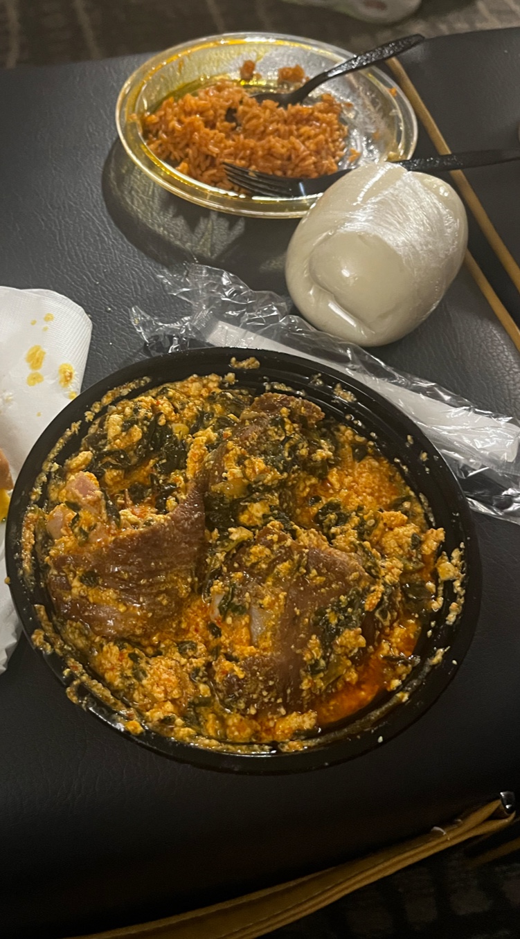 The Egusi has about 5 tablespoons which tastes under cooked, one slab of bone, a tablespoon of tough meat and a hunk of skin/fat. The bone and gristle have no flavor. You’re not even able to chew whatever you’re able to get off the bone (zero meat) It tastes like it was boiled in water alone. The fish on the side. Which is smaller than my palm for $5. The taste of everything is terrible, the sauce taste with the fish is like tomato sauce! It was super tough and overly fried? on the outside. I’m honestly unsure. This food is unlike any Nigerian food I’ve eaten. This is by far the worst Nigerian food I’ve eaten, and I have been to many, many places!! I am extremely disappointed. The meal come with one swallow and I choose pounded yam (which was actually good, just small like all the other things) and ordered another to be able to share (because EVERY place I’ve been to the quantity is plentiful!!!) and it is literally in the trash!! I didn’t even take a picture, it had to be spoiled. My husband tried to thinking I was joking and nope, he spit it into the plastic. And just a heads up, this is NOT a restaurant. It’s a pick up place for Uber eats etc. but they are located in the back where they can have food ready. Do not plan on dining in, although on the website it shows tables and chairs giving the misrepresentation of being...