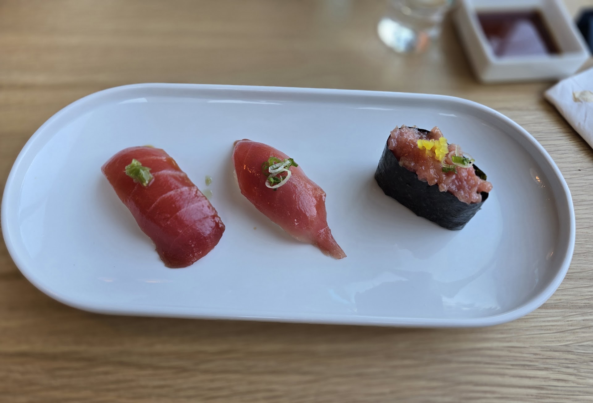 Read moreGood experience overall. I thought the fish was fresh and tasted clean as well as its presentation. However I thought the flavors needed to be punched up by 50% while understanding letting the fish be the star; a good portion of the items fell short. With that, I believe all the options were fish and served cold: nothing torched, no other proteins like your omakase competition serving at least one meat option like a braised short rib or sorts. Service was good. A lot of the food was dropped without detailed description of was being served. But if itâs being served in order as listed on the menu that youâre allowed to keep - maybe itâs not a big deal. I think theyâre freshly opened so Iâm hoping itâs more helpful than not with some of the ambience and service aspects: late drop on candles, not clearing empty glassware, food selection/preparation. The price was decent, especially for the area but the I left wanting wayyy more or going to the competition and paying the additional $30+. And for some reason the included gratuity was 16%, why?? Standard is 20%. While I wanted more from the food, if the service (even if itâs basic) was good 20% should be the added grat. All things considered, willing to give it...