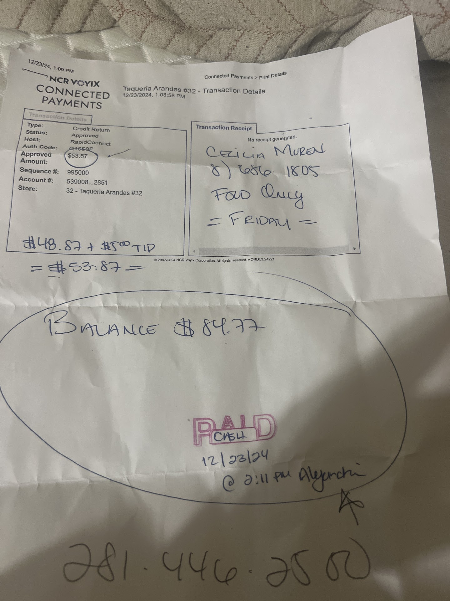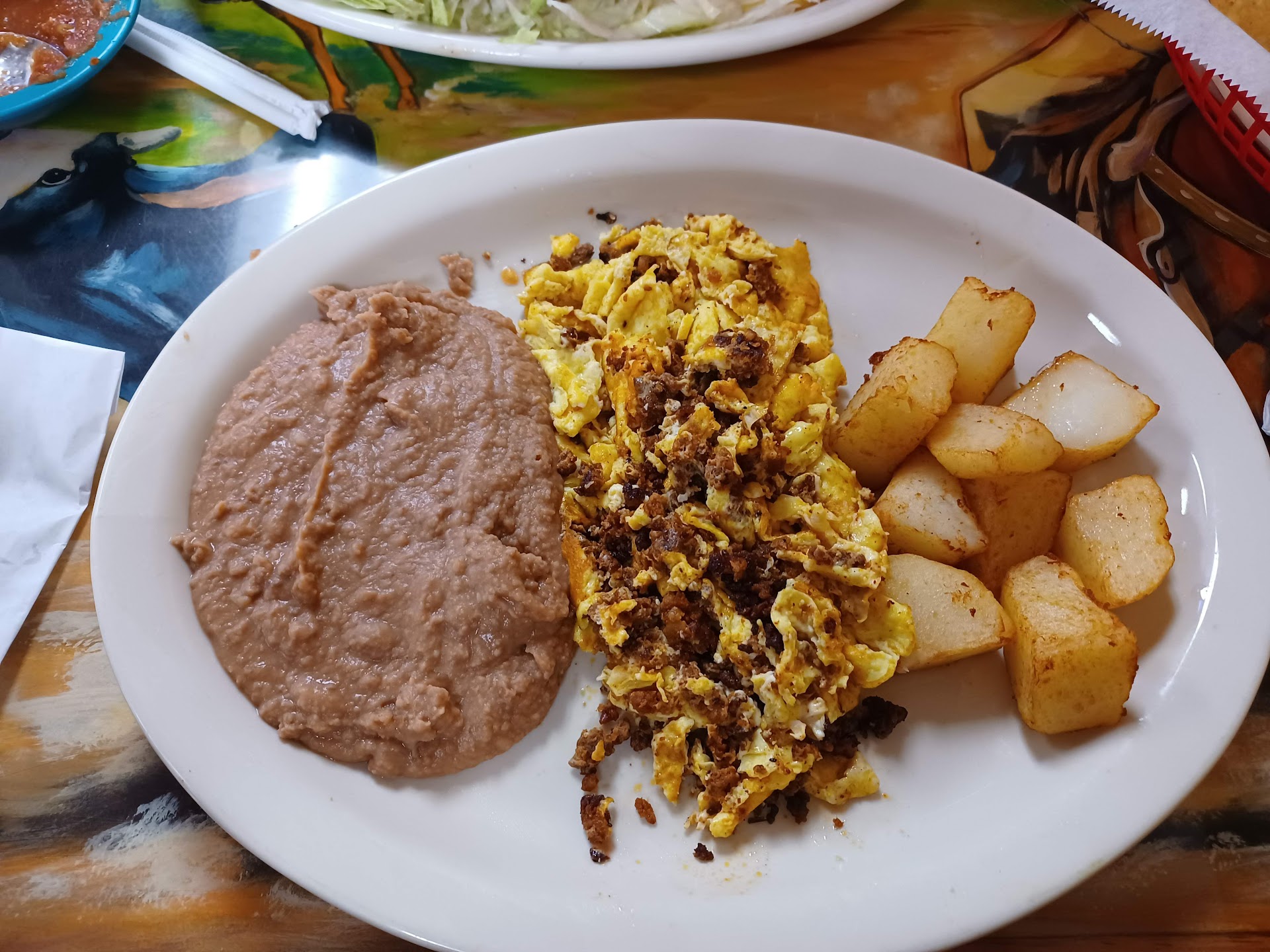 Read moreCalled in an order for pick up of breakfast tacos. From all the positive reviews I figure we could give this place a shot. Once I get there the first thing I see as I walk through the door is a lady spooning pepper into pepper jars from a 32 oz Styrofoam cup. Sitting right next her is another lady scooping green salsa from a large container into tiny 1 ounce cups. I should note that the container had crust all around it. I am greeted by the guy behind the counter who asks if I'm here to pick up, I say yes and tell him it was the 4 taco order. He looks confused, so I proceed to rattle off my order, oh, he says, we didn't get the last two. So I wait. He brings out a bag and tells me they are all in there. I decline his offering of salsa, and leave as I am in a hurry to get to work. I open the bag to find the tacos, I ordered bacon egg and cheese, the tacos I received were egg cheese and a sliver of bacon. One half slice of bacon. To top it off the tortilla was hard around the edges like it had been microwaved. My wife order potato egg bacon and cheese. She got potato and egg tacos. I would have been satisfied if they had just got our order right and didn't microwave the...