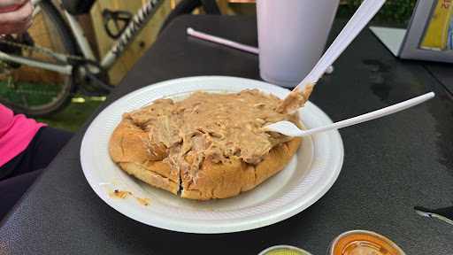 We ordered a mollete and a couple of gorditas. The gorditas were good. I couldn't believe the mollete though. Instead of spreading beans on a cut bolillo and melting cheese on top of it, they slapped some pre-mixed beans and cheese on top of a whole bolillo without even cutting it. See the picture. This...