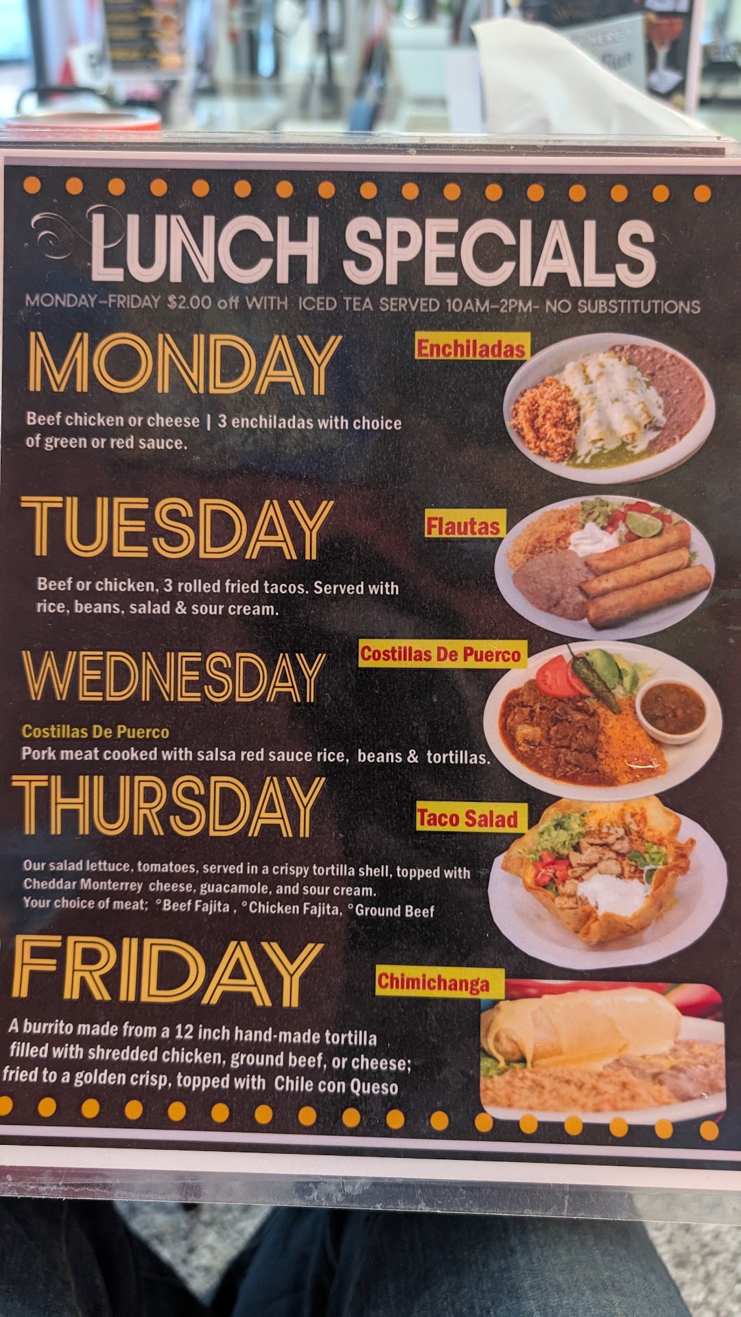 Read moreWas exited to try this place after seeing the reviews and the fair prices online which wasn't the same as the menu inside everything was at least $3/4 more.we were completely disappointed ... Only giving a one star on food because it won't let me select none. And I guess the chips were good. But everything else was far from great. My husband got a burrito which was wrong & that was completely torn up and mentioned it twice about the burrito wrap and they did nothing about it . The rice and beans they offered him to fix the wrong type were old and dry and you can tell it was sitting all day... I tried the two meat plate at First w barbacoa and lengua and both were super dry and tasted like boiled meat w no seasonings when brought to their attention the server said there was salsas.... completely unedible...so I tried the carne asada which was decent compared to the rest. My mom got crispy taco plate which who isn't a picky eater and even said it wasn't good and agreed the rice and beans tasted old... Still two hours til closing not serving fresh food.. my daughter got the kids pizza and fries which we thought was a safe option but the pizza was a cheap frozen cheese pizza that we could've made better in our own airfryer & wasn't worth $8.... I also get that not everyone makes their own tortillas but at least offer decent store brand Tortillas for what you're charging.. and to top off while we were leaving a "customer was going in w no shoes on completely bare foot.and they allowed him to order and sit and the bar top...... All in all never been so disappointed w a restaurant and not...
