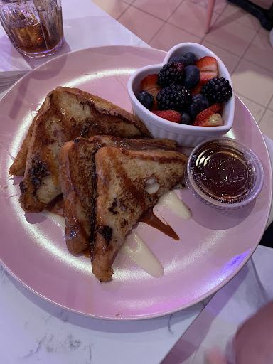 As for my husband, he ordered the Enmoladas Verdes, which I enjoyed more than mine. The green mole was good, but the shredded chicken was dry, with hardly any flavor to the meat at all. The charro beans were alright. Don't even get me started on the rice. SMH. I will say the only thing that was very good, was the pink Waffles our grand-daughter order. She also loved how the pink whipped cream and lots of fruit. Our daughter order the birria tacos. They were good, but not great.