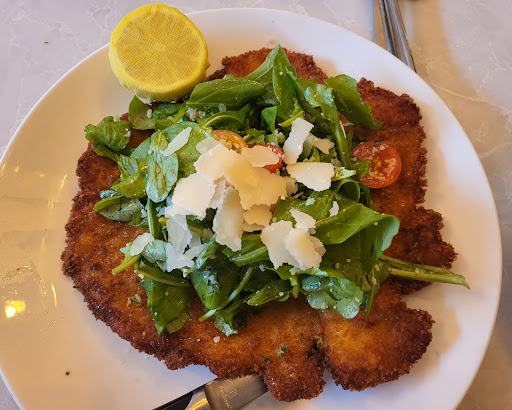 I had an appetizer that had fried calamari that seemed to be old and cold. The calamari was so rubbery that I could not even chew it and not even coated in fresh batter like it was fried that day. I am not sure how many days it had been there. This also goes with the eggplant Parmesan which could have definitely been days old as it was mushy and obviously just cut out of a pan and thrown in the microwave. I don't know why this is called eggplant Parmesan as there is no cheese or breading, just mushy, congealed eggplant with no sauce. This dish also gave my partner extreme food poisoning. I had the Salsiccia and it was completely inedible. I don't know if it was off or what.