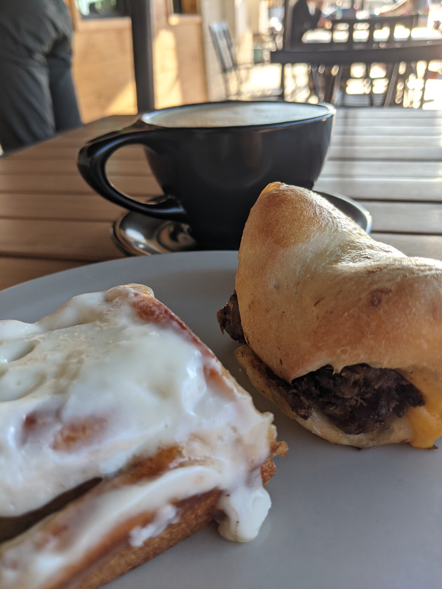 While visiting family, we decided to grab some coffee at a local place. The place is supposed to be known for their cinnamon rolls.