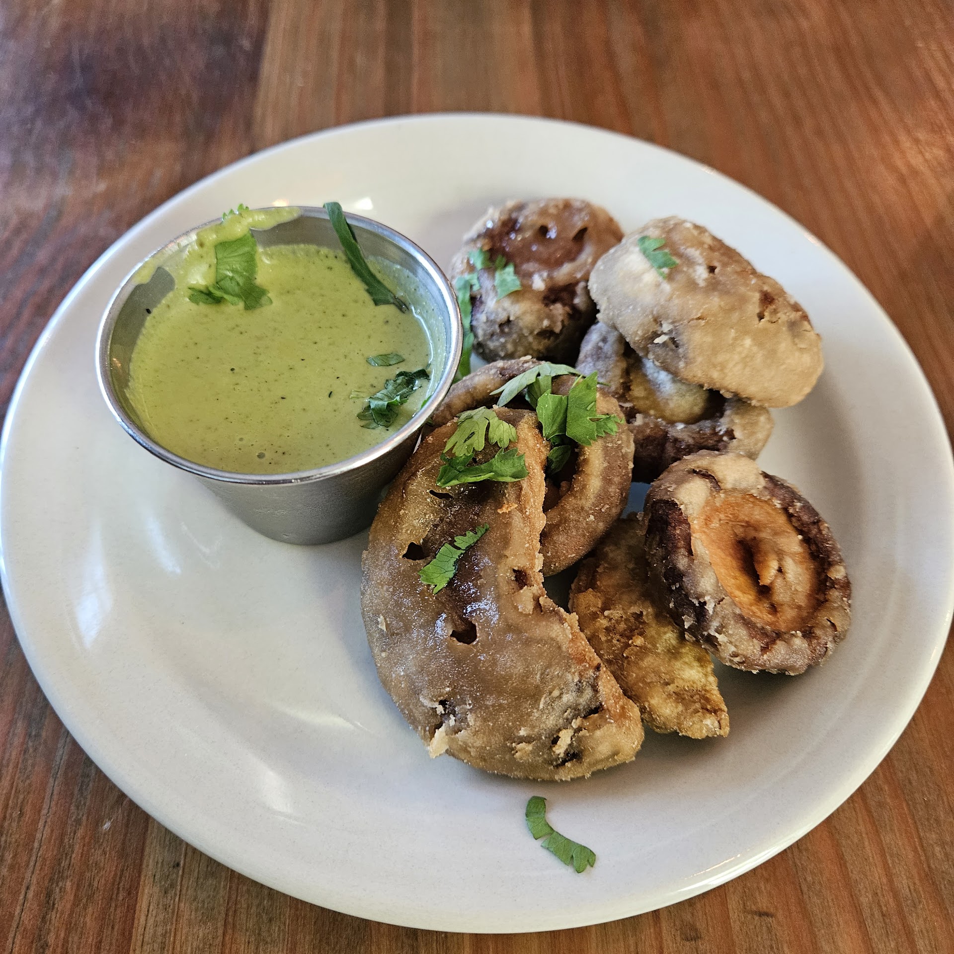 Beer battered mushrooms and the rice balls are both excellent starters (both come with excellent sauces that make the dish). Green curry fried rice (which I ordered with pork belly) were also nice. From the brunch menu I ordered the waffle and breakfast fried rice, both of which were delicious for me. The basil lime fresca house drink is also really refreshing (although the taste does change from visit to visit which is odd). My friends and I have never missed with any dessert from the attached cafe.