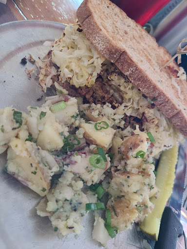Here goes. Started not great to begin with... The place smells like kibble to me (was it the yeast /brewing process as my husband wondered? But we have eaten at a 100 breweries and I have never smelled this before). There were only a very few beers on tap to choose from, 5. One ipa west coast style (no hazy or NEIPA or sours as are my preferences) but we went with what we could. We were hungry so the availability of some games/puzzles (missing pieces but what can you expect) helped keep kids occupied while waiting. The food came &this is where the real trouble started. The deviled eggs app was ONE egg! Usually, this type of dish includes at least 2 or 3 eggs cut in half. Also there was bacon on it which was not mentioned but this wasn't a huge deal bc the member of our party ordering that isn't the vegetarian. I am. I ordered specifically the vegetarian stuffed peppadews (which was listed correctly on our bill) but they came stuffed with prosciutto under the cheese! I was horrified. I reported this to the staff and initially they didn't say anything and I was preparing a. Nasty review. But luckily then a few minutes later one waitress came over to me and Apologized several times, and another stopped by to as well. They took that off the bill and reduced the rest of the bill as well, an appropriate move. The flies, the hair in my sandwich, the barely visible or tasted sauce on the reuben, the fact that the "frito pie" was literally a bowl of chili with Zero fritos solidified we won't come back. But the kind response of 2 of the staff prevents me from being nasty with...