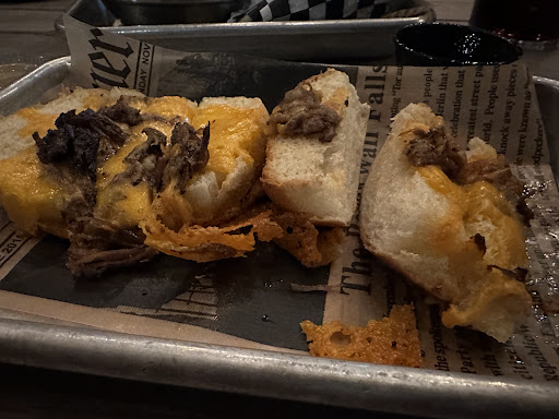 Read moreThe front page is straight up dope. It’s a neighborhood bar that shows you what Austin Is all about. Go in there and order yourself a jellyfish and some pretzel bites and Queso. Still hungry? Their brisket and cheese for him, and the turkey Cesar for her will leave you both full and wanting more food. Not because you’re hungry, because you can’t remember a bar food bite so original and authentic. Their outside seating is cool and sun blocked. Their bartenders are friendly faces and the vibe is chill but social. It's a very understanding place. Don’t be surprised if the place is packed with trivia on a weekday, and/or improv during the week, or if you might be lucky enough like me to enjoy the quick bite and dash back to the family. It’s def worth the trip to see...