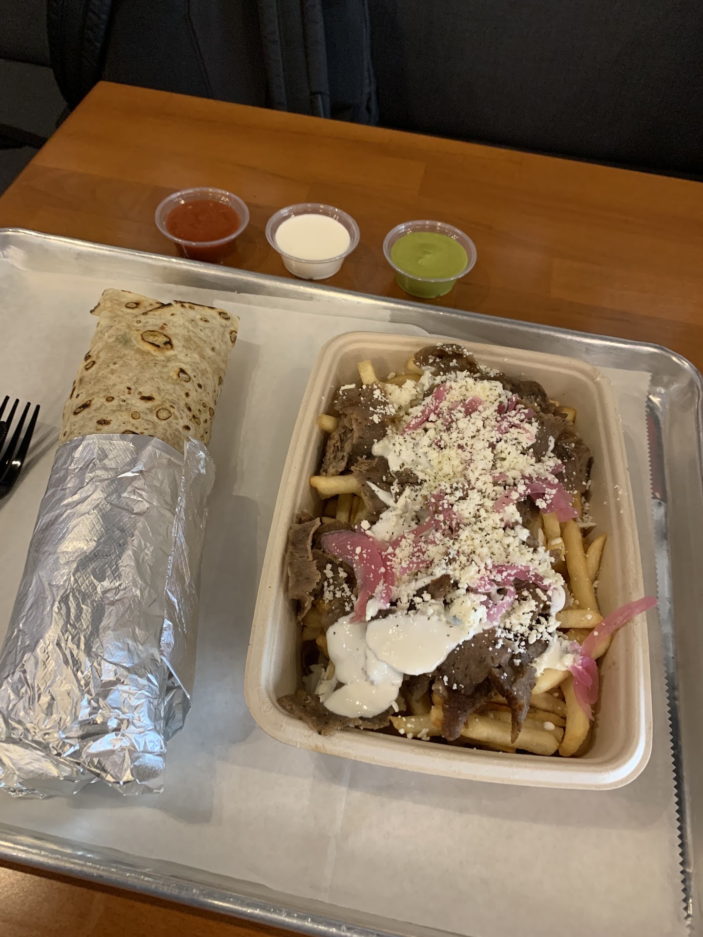 Ā Ā Ā Read moreWent and checked this place out today and WOW! Austin's Mediterranean food scene struggles in my opinion. Either you have places with incredible food but less than decent atmosphere or you have the atmosphere and just ok food. Well, this place has both. We had the plates: mine with Greek salad, lamb and beef and falafel and my wife had the salad, chicken donner and hummus. All were excellent and the service was cheerful, welcoming and quick. Music (eclectic modern/alt rock mix) was really good too. We will be back as we crave Med food often. Next time I will probably try a wrap. I saw one awaiting pickup and it is absolutely big enough to eat half and have...