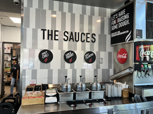 The good is prepared behind glass right in front of you, so when I say this place is clean & shiny new I mean spotless and carefully maintained. Everything is very fresh - no mushy tomatoes, limp lettuce, or dried out onions. I had an updated version of a gyro . I know youâre asking, âGyros are fabulous as they are, why would they need updating?!?!?â Well, I would have said the same thing until I experienced their gyro wrap. The flame- kissed flatbread wrap makes soggy, falling-apart pitas so last season! đ And for those of you who, like me, can never get enough tzatziki, right beside the drinks fountain is a sauce bar where you can sauce away to your heartâs delight!