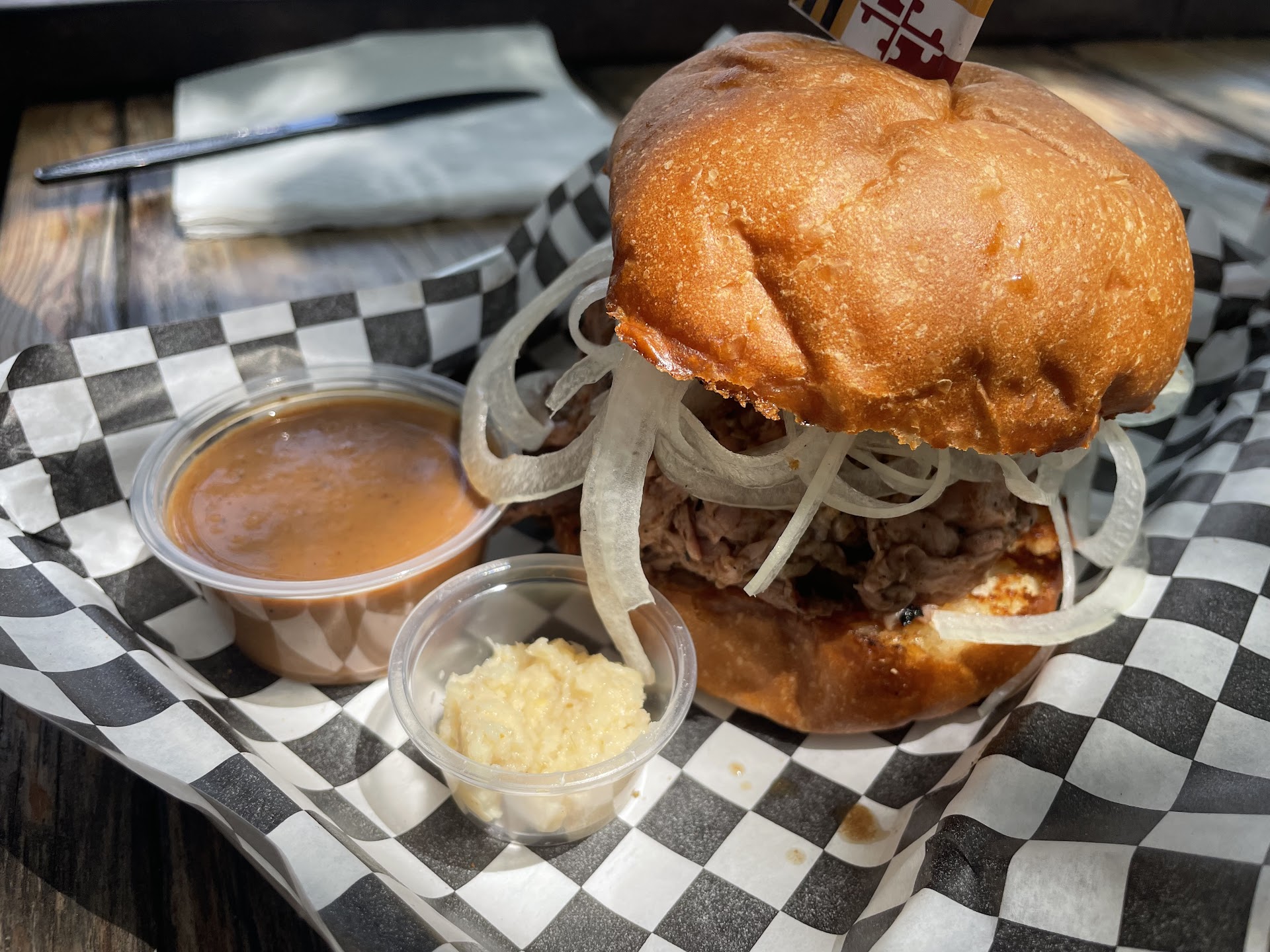Ā Ā Ā Read moreAs Maryland natives, my friend and I had to go support the new food truck at Webberville, The Marylander. We went during their soft open and received free orange crushes and when we told the owner we were from MD, he gave us free stickers too. Friendly service in cute area surrounded by other food trucks and a market was going on too. We ordered the benedict, the crab dip, and also had to pick up some black & white cookies. We enjoyed the MD flair on the truck and surrounding it, it made us very happy to have a piece of home in TX. The food was delicious and topped with that Old Bay we love! We have plans to go back soon and try the wings and the pit beef!! We'll support this...