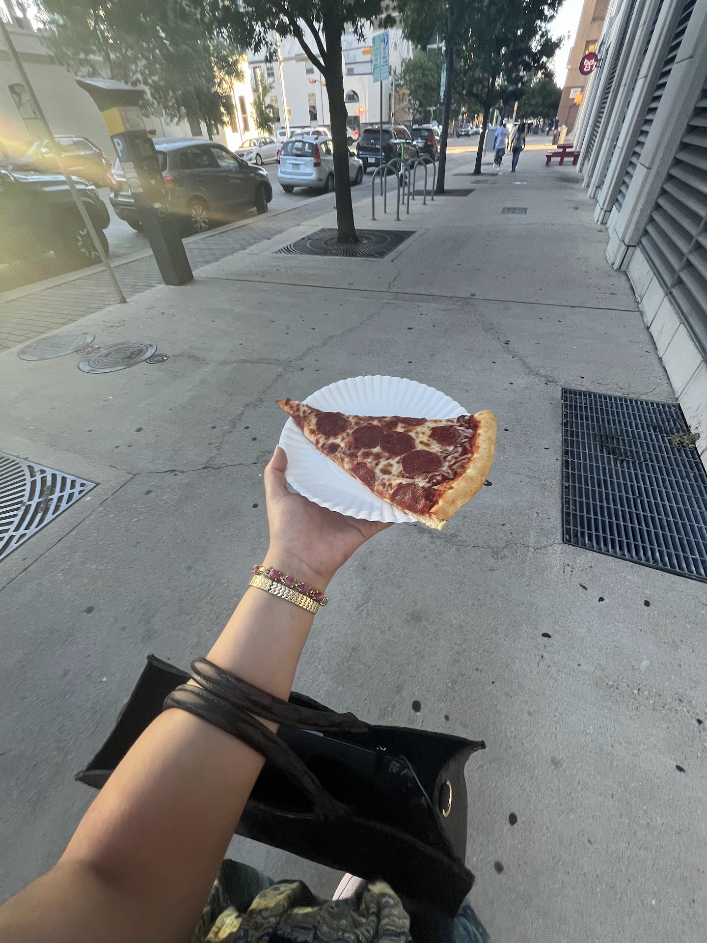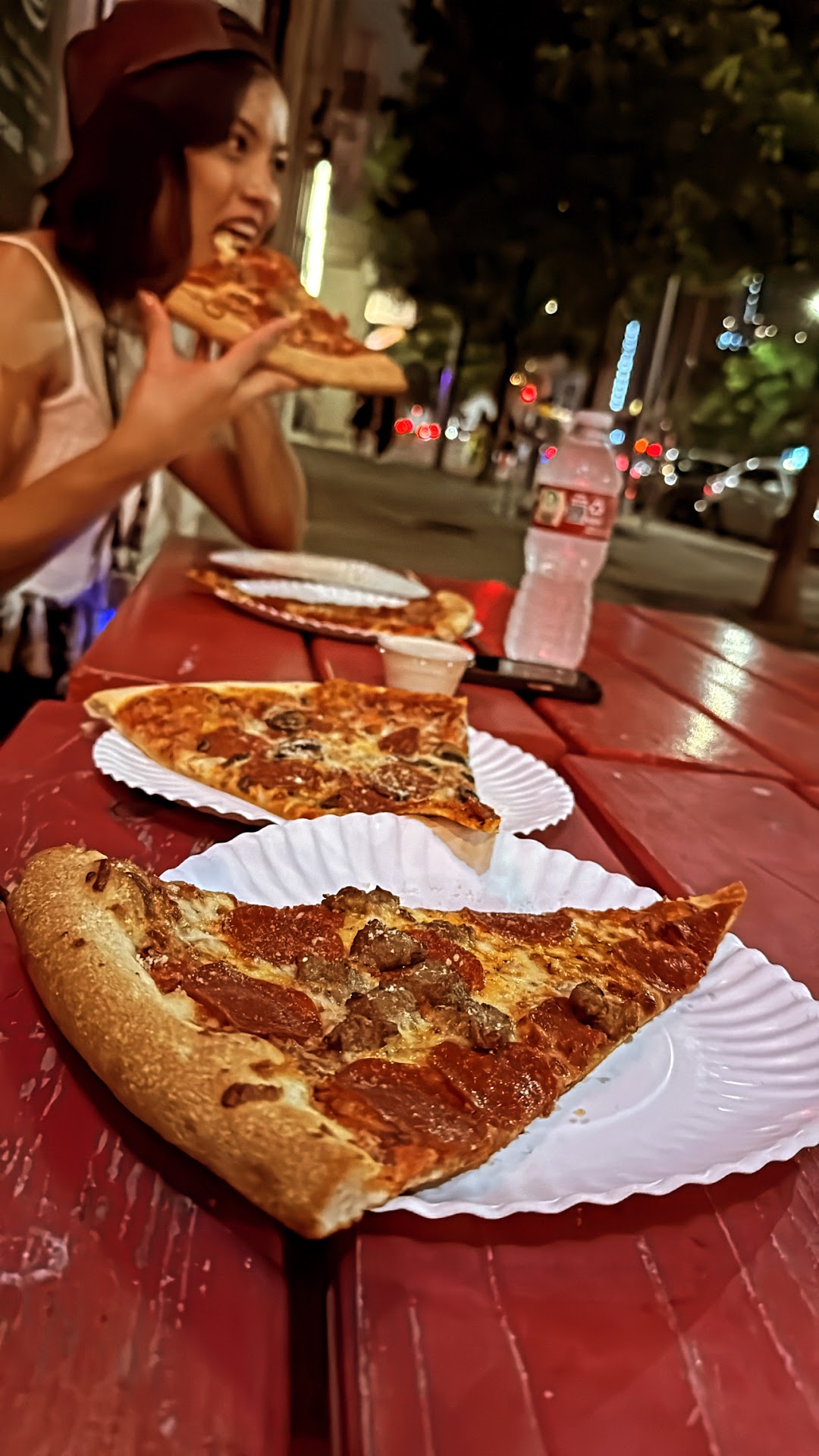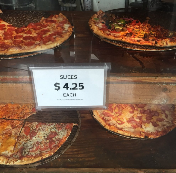 Read moreA no frills pizza place. The pizza was okay, nothing special. Actually it was more disappointing than anything. I ordered a cheese pizza. I was surprised with how little cheese was on the pie. I could see the sauce and crust throughout the entire pizza with a light sprinkling of cheese on top. The individual slices for sale and on display looked considerably better made (the expected normal amount of cheese) than the whole pizza we ordered. The store front looks likes they haven't spent a dime in maintenance since day one. Imagine a post apocalyptic under ground pizza place surviving on scavaged materials and supplies. Needless to say you don't go here for the atmosphere. The service wasn't great either. The worker was not particularly friendly or customer service oriented. Perhaps he was in a bad mood or having a bad day. While waiting for the pizza to be made the sole worker cranked the music up on the store stereo as if he was a DJ at a house party. It wasn't just loud, It was very loud. My guess is, it's his way of ensuring nobody tries to talk to him while they wait. We get it, you aren't a people person. This place must survive on the lunch crowd and the late night post bar people looking for some cheap easy food. If you want a decent pie with an ounce of customer service...