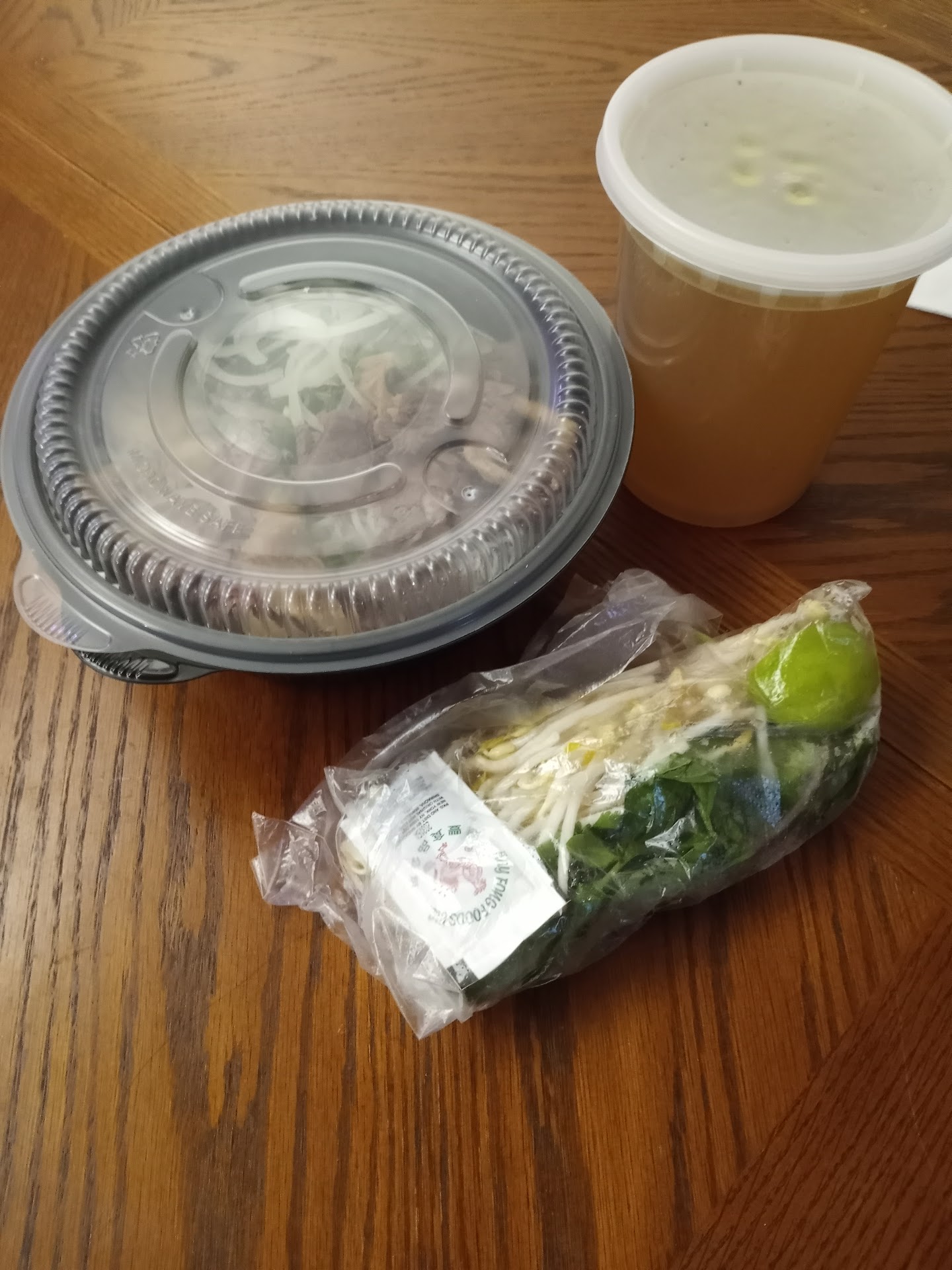 Food was good. The pho broth was robust and flavorful, not overly sweet like how Iâve noticed with other restaurants which I appreciate. Our pho came with thick fresh noodles (banh pho tuoi) which my husband and I personally donât like in general- especially this specific preparation since it was on the mushier side and was breaking apart in the broth. We always go for the regular thin noodles and were surprised when the pho arrived because our server never mentioned anything about the thick noodles. Iâm unsure if they only use the thick fresh noodles here, or if there was an option to pick between that and the regular noodle, but our server never gave us the option to choose? Aside from that, the bowl was on the smaller side portion-wise compared to other restaurants, but reasonable for the price. The vege portion included bean sprouts, green pepper, and Thai basil which was also on the smaller portion size, but seemed fresh. I got the Vietnamese shaken beef (Bo luc lac) with egg noodles. I enjoyed how it came with some mushroom (I think it was seafood mushrooms?) and bell peppers. The egg noodles has a wonderful firm texture and was coated nicely in the brown sauce. The beef was very tender, however the cuts werenât very uniform. It also lacked the âwok heiâ charred sort of flavor I usually enjoy with Bo luc lac. But it was generally seasoned well. I wish the noodles also came with the side of salt pepper lime like the rice version does, though.