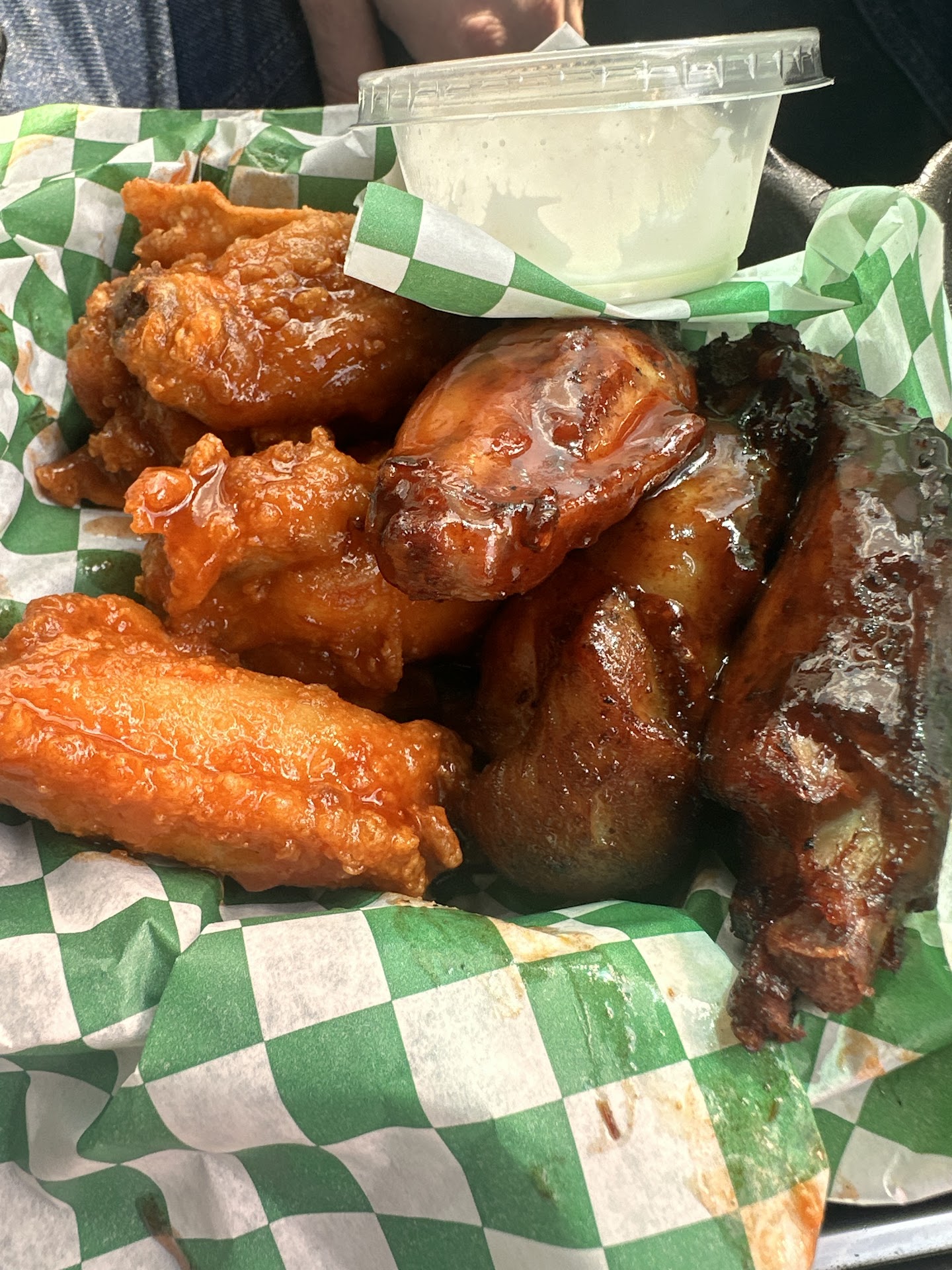 The brisket was moist and not dry. The wings were smoked, tender, and not dry at all.