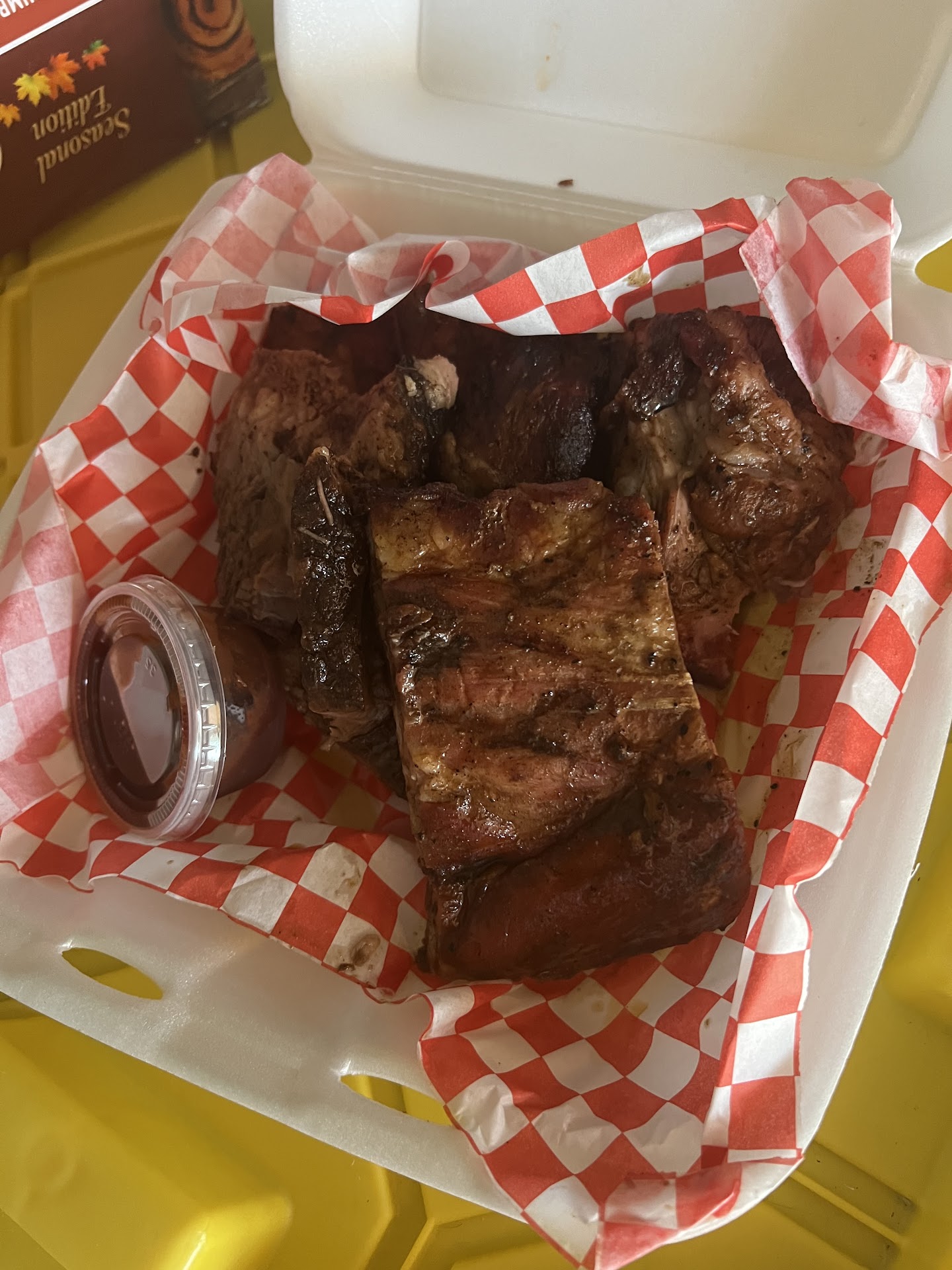 I got my fiancĆ©e some Rib Tips for when she gets home from work but of course I had to sneak a lil taste for myself.. they were perfect. When I get home from work we are about to destroy that plate because once again it was such a generous helping I know for a fact she wonāt be able to eat it all herself⦠and thatās 100% fine by me.