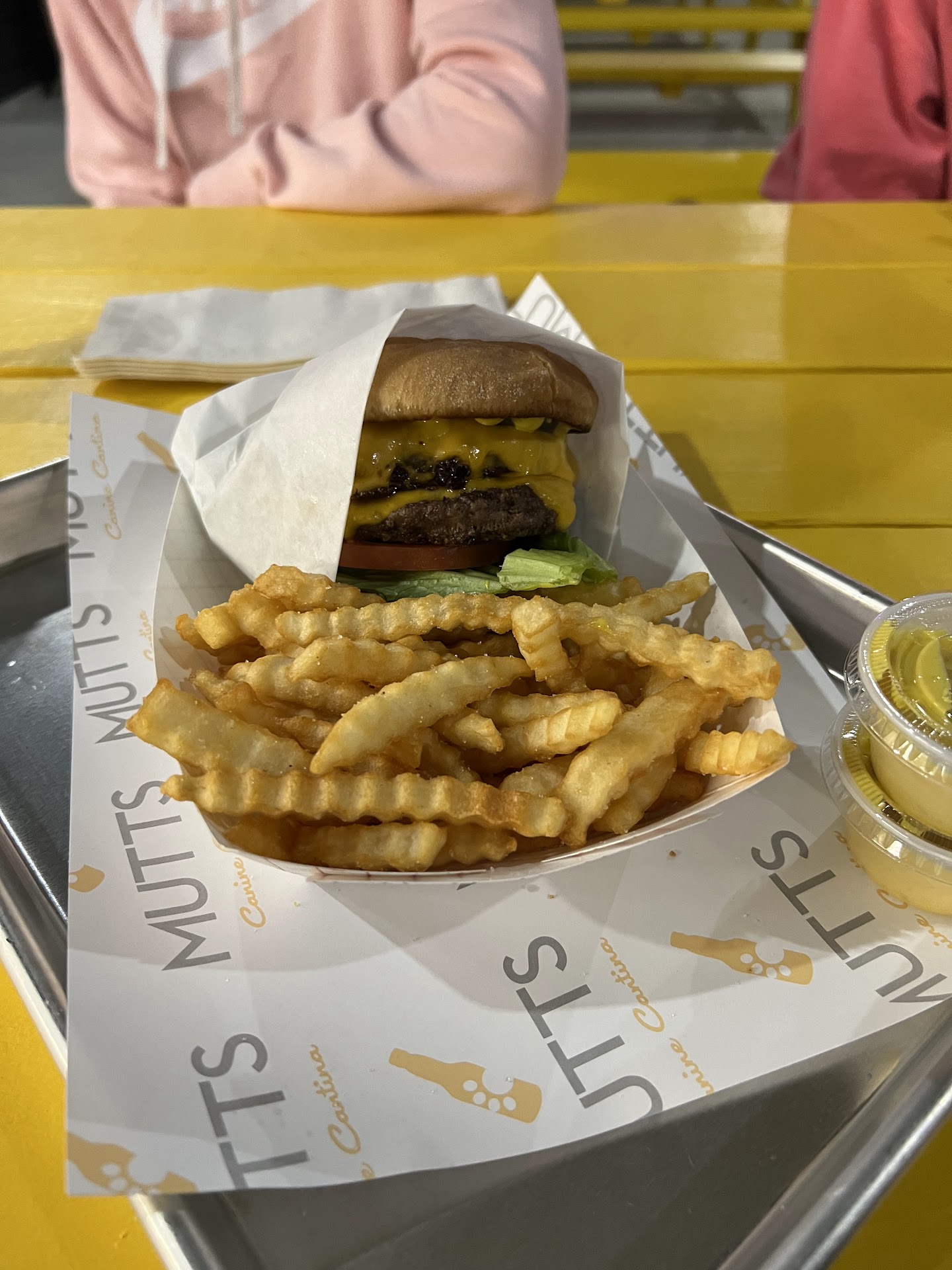 The service today for my family and I along with a couple of friends was great! One of the owners came out and talked with us about our food experience. He asked us what we thought about our food. Most of us bought the double mutt cheeseburgers and two of my kids got the chicken tender meals. All the meals come with a drink and crinkle-cut fries. And meals are right at or under $10. With today's inflated prices not a bad deal for bringing a family to eat here. We let the owner know about our opinions with our food and he took some mental notes. One of the orders did get a mix up; however, the owner replaced the burger with the correct order of just a plain burger.