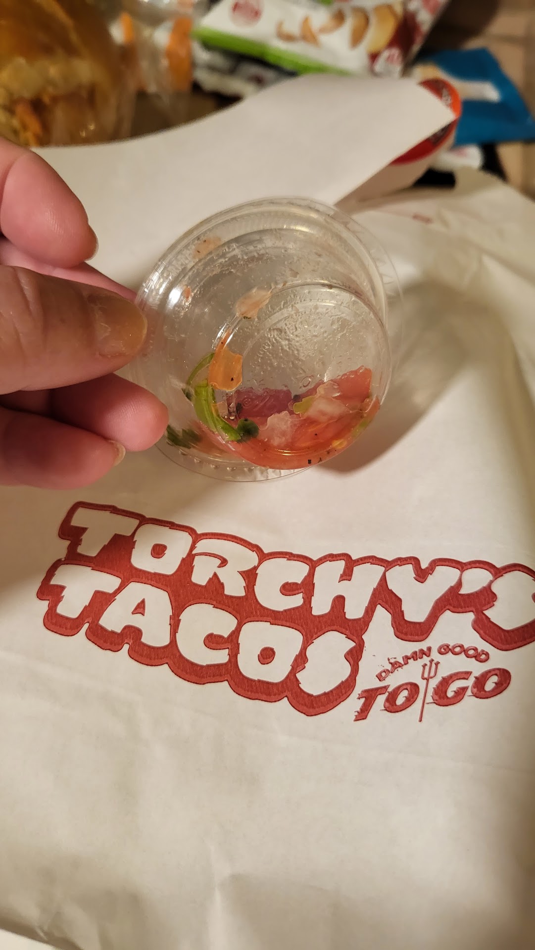 Read moreFried avocado and tipsy chick have come out literally cold, not even lukewarm protein the last few times. So disappointing compared to the quality y’all used to have. When we went to the bar to order some margaritas the bartender literally cringed when we mentioned the idea of swirling flavors in the frozen, then proceeded to tell us why the process was annoying thereby talking us out of what we wanted—which is an option on the menu. Why have it if you’re gonna hire lazy bartenders who don’t wanna do it because it’s a pain? We wanted to close the tab and take our drinks outside to wait for our food, but he never took my card I left out very obviously placed at the edge of the counter to start one and didn’t even ask me if I wanted to leave it open or close it. We ended up sitting down and having to eat at the bar as we waited for him to have a moment free as he ignored us and asked the next 6 people what they wanted to do with their tab. 30 minutes later he finally noticed it. Then we heard the bartender and some other employee bragging to one another about making “easy money”, overall worst Torchy’s experience ever. got rid of lil nookies and sold out for the $. also, a simple brisket and cheese quesadilla is NOT a taco and seems like a lazy pick for “taco” of the month. you can’t put parenthesis around it and think it’s passable. what a joke. I used to go to your food truck with my dog and Torchy’s was my favorite place...