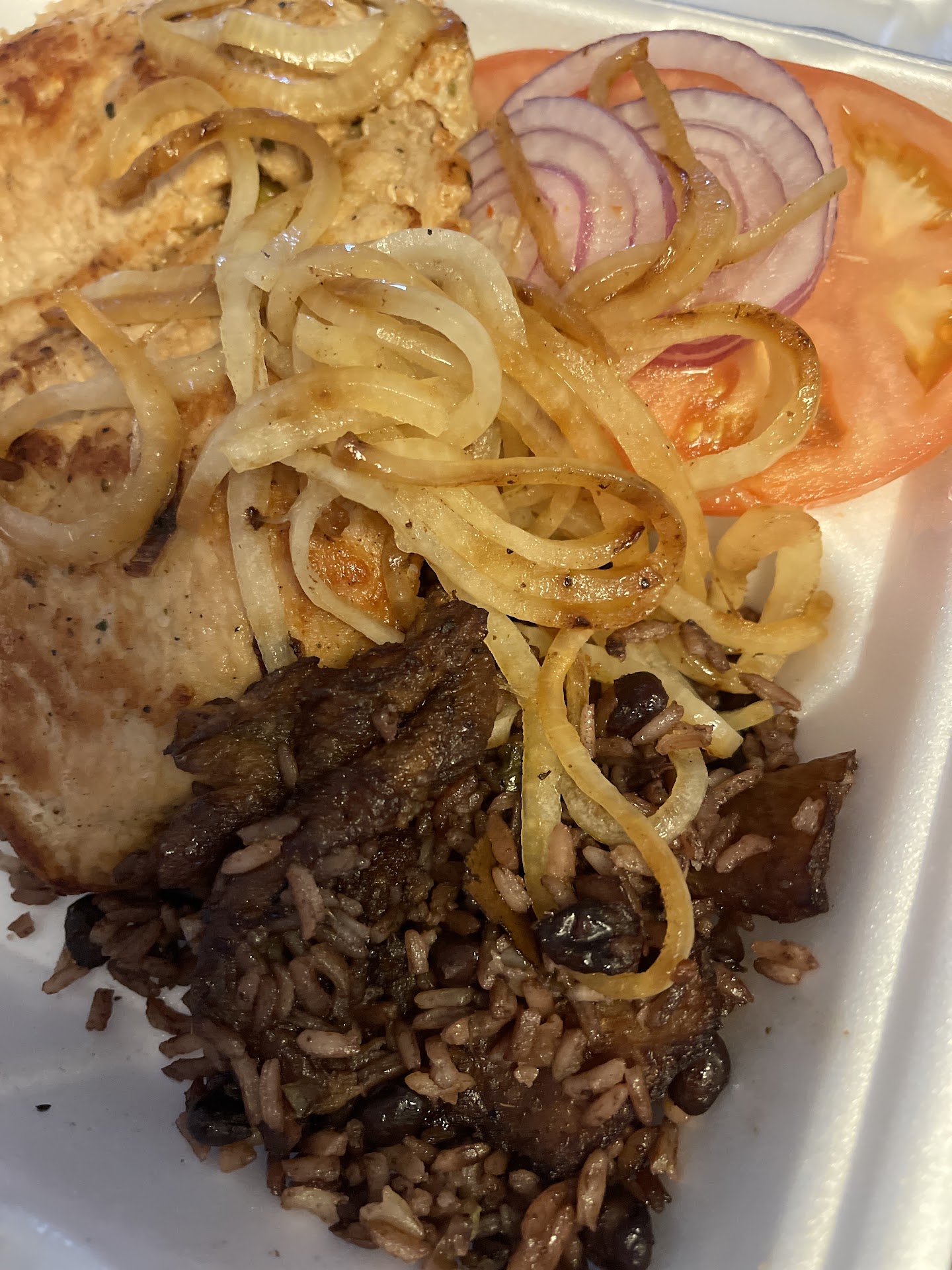 The Fricase del Pollo (kind of like a chicken stew with potatoes) was excellent! It came with black beans and ric, some pasta salad, and some bread. A lot of food for $7.50! I ordered the Cuban sandwich and I loved it. I don't know what kind of bread that is, but it is delicious!. My grandson's Mini Ropa Vieja is like stewed beef and it also came with beans and rice, pasta, and bread. He complained a little at first about the black beans, but we reminded him that we were trying new things. Amazingly, the first thing he finished was his black beans and rice!