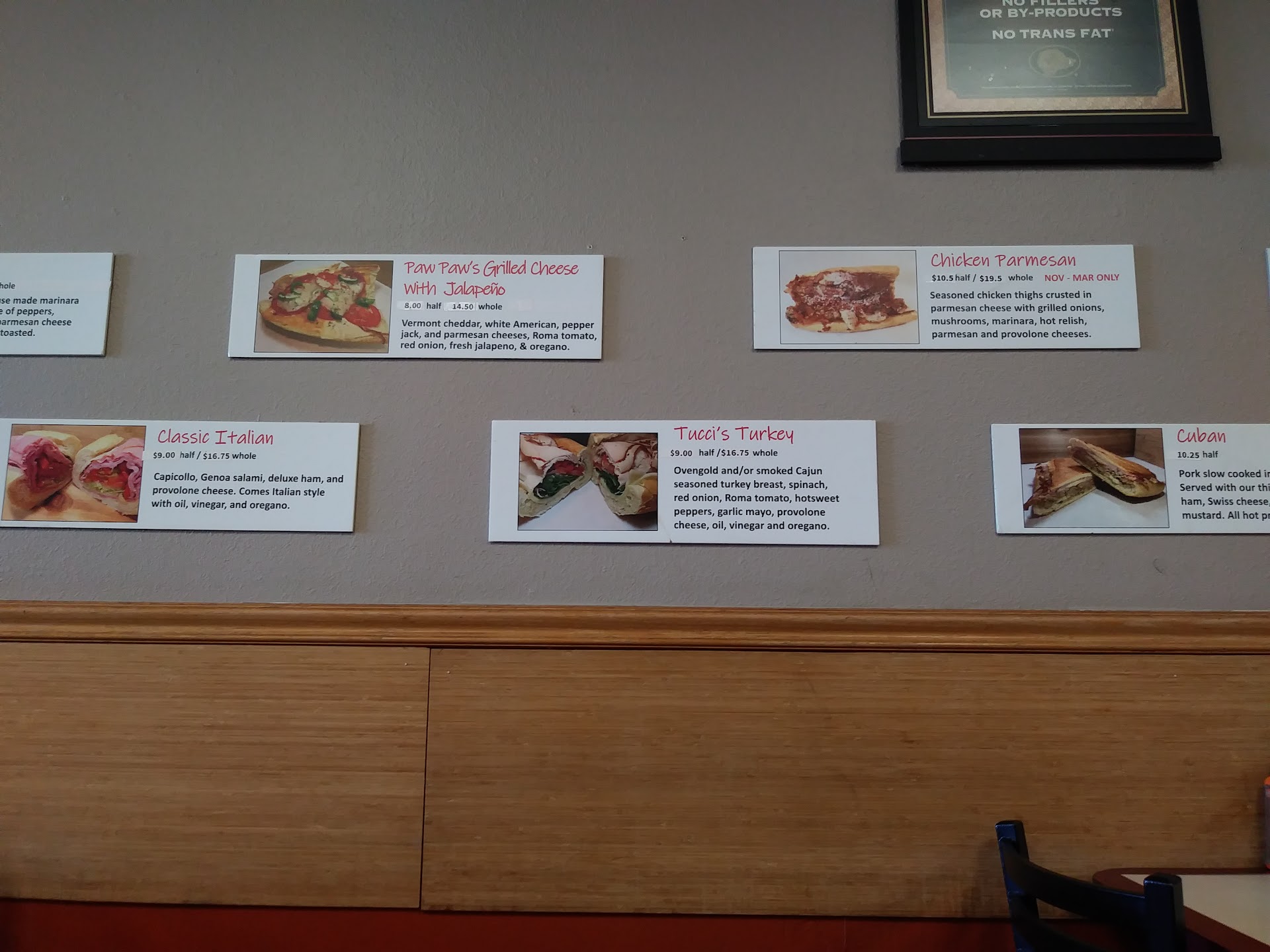 Also to note, they have two kinds of bread: white and wheat. When I went during the middle of lunchtime, they were out of white for the day.