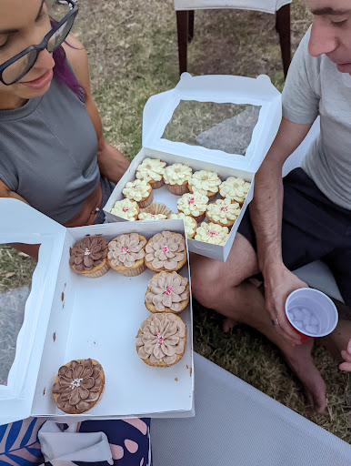 That said, these beautiful cupcakes showed up at a going away party I went to. While I was full from dinner, one look, and I knew I had to try one. Just a bite. As someone at the party put it: "when a pastry chef brings dessert, you can't not try it". And that I did. I chose butterscotch. Light, sweet, but not too sweet!
