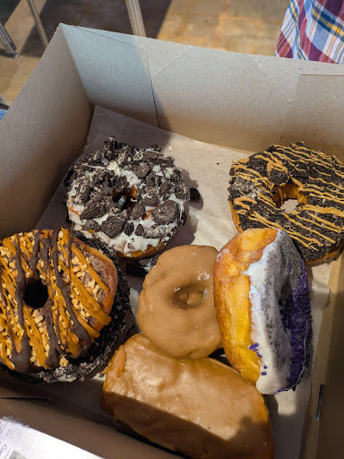 Read moreThis donut shop is a good stop while in Austin if you want to try some different kinds of donuts. Many people rave about Voodoo Doughnuts and so we certainly wanted to give them a try. We however, are hot donut eaters. And everything they had here was cool. So for us that wasn't our jam. But that doesn't mean it's not yours! The donuts are ready and incredibly sweet. They have a variety of different kinds of donut choices. I love to get the donut called chuckles. It's a chocolate donut with peanuts and caramel drizzled over the top. It is so good. My kids of course love the white Oreo version. It's called dirt and those were our favorites. There are some adult type donuts in the shop, so if you're taking small kiddos in you might want to be aware. We paid $29.95 for our order of donuts in the box shown in the pictures. It's a great first time experience, but for us I think we'll go the hot route next time. But there are folks that absolutely adore this donut shop. Certainly a taste adventure as you try the different donuts that they offer. Grape ape I believe is one of our favorites. It's a sweet grape donut with a sour powder side as well. It's different but that's what you're going for if you're...