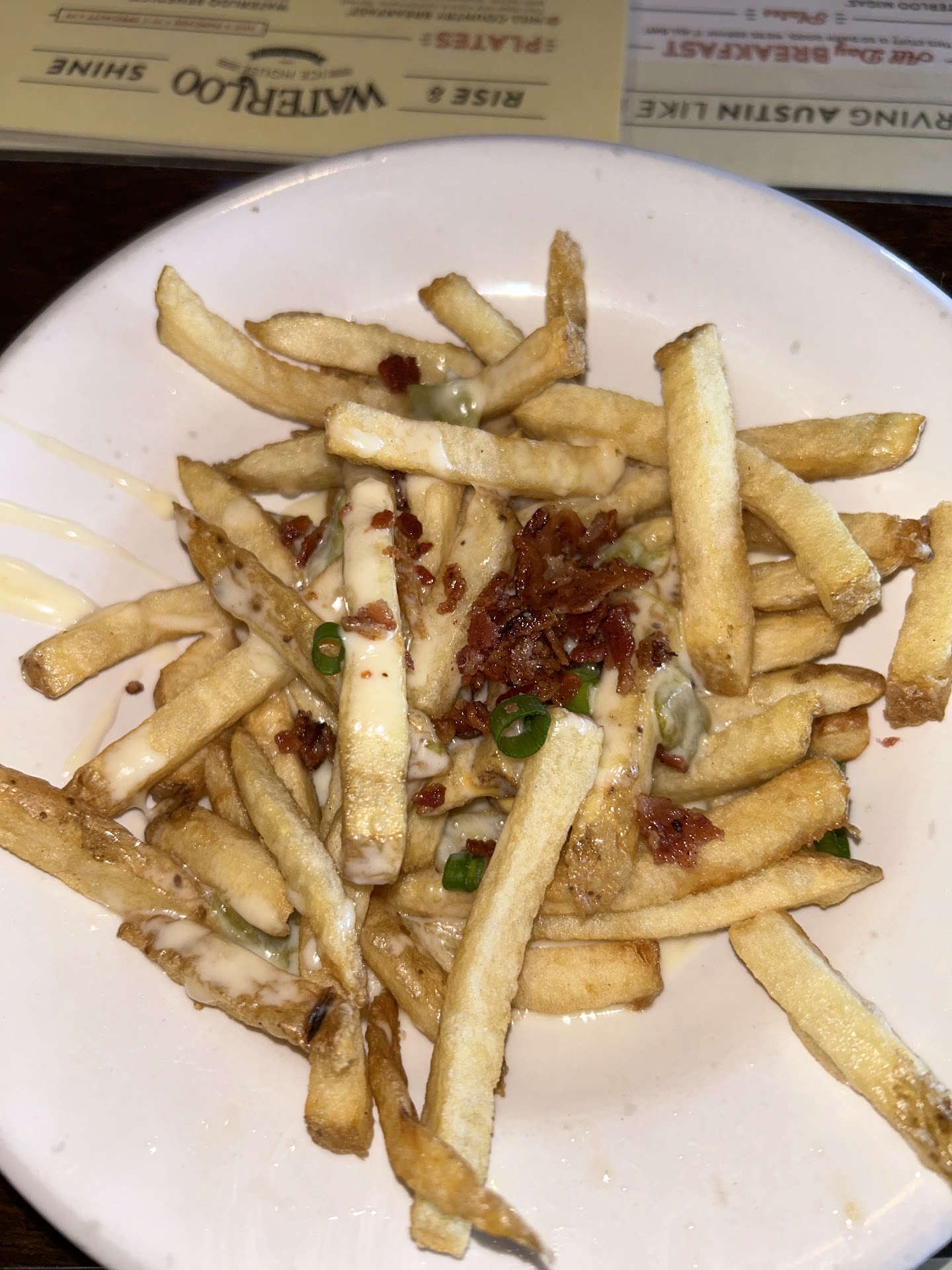 I noticed Dawn served coffee and took an order from a customer over one table and railing. The customer, an older lady, had to turn to her left and reach over the railing and part of the table to hand Dawn back the menu. The customer at the table beside ours pulled a long hair out of his taco. He didn't complain but set the taco down and finished the rest of his breakfast. I did not feel that Dawn deserved a nice tip, however my friend was paying and gave he a nice size tip. The food had plenty of flavor, but the quality was lacking. Proper serving plates, utensils and temperature of food needs to be readdressed. The restroom sign??? The word "Sanitary" over the words restrooms? Aren't the restrooms suppose to be sanitary anyway? I have been to Waterloo at night, busy times during football games before and never had an experience like this. Needs to be an emphasis on training... at least for the...