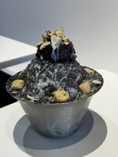 We tried the Black Sesame Bingsu, which had that deep, traditional nutty richness. The Gold Bingsu with Injeolmi was a true highlight!!! Soft, chewy rice cakes dusted with roasted soybean powder, perfectly paired with light, fluffy shaved ice. The Mango Bingsu came piled high with generous chunks of fresh, sweet mango that tasted like summer in every bite. And for chocolate lovers, the Chocolate Bingsu was pure indulgence. Rich chocolate shaved ice topped with fudgy brownie pieces and a sprinkle of Oreo crumble.