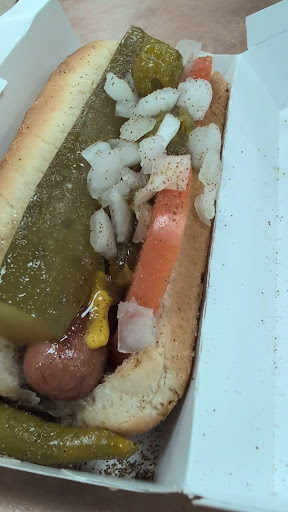 About 25 minutes till closed so the place is really clean. I hate bothering employees when I know they're going to have to clean up after me so close to closing so we made it easy. Got four hot dogs.
